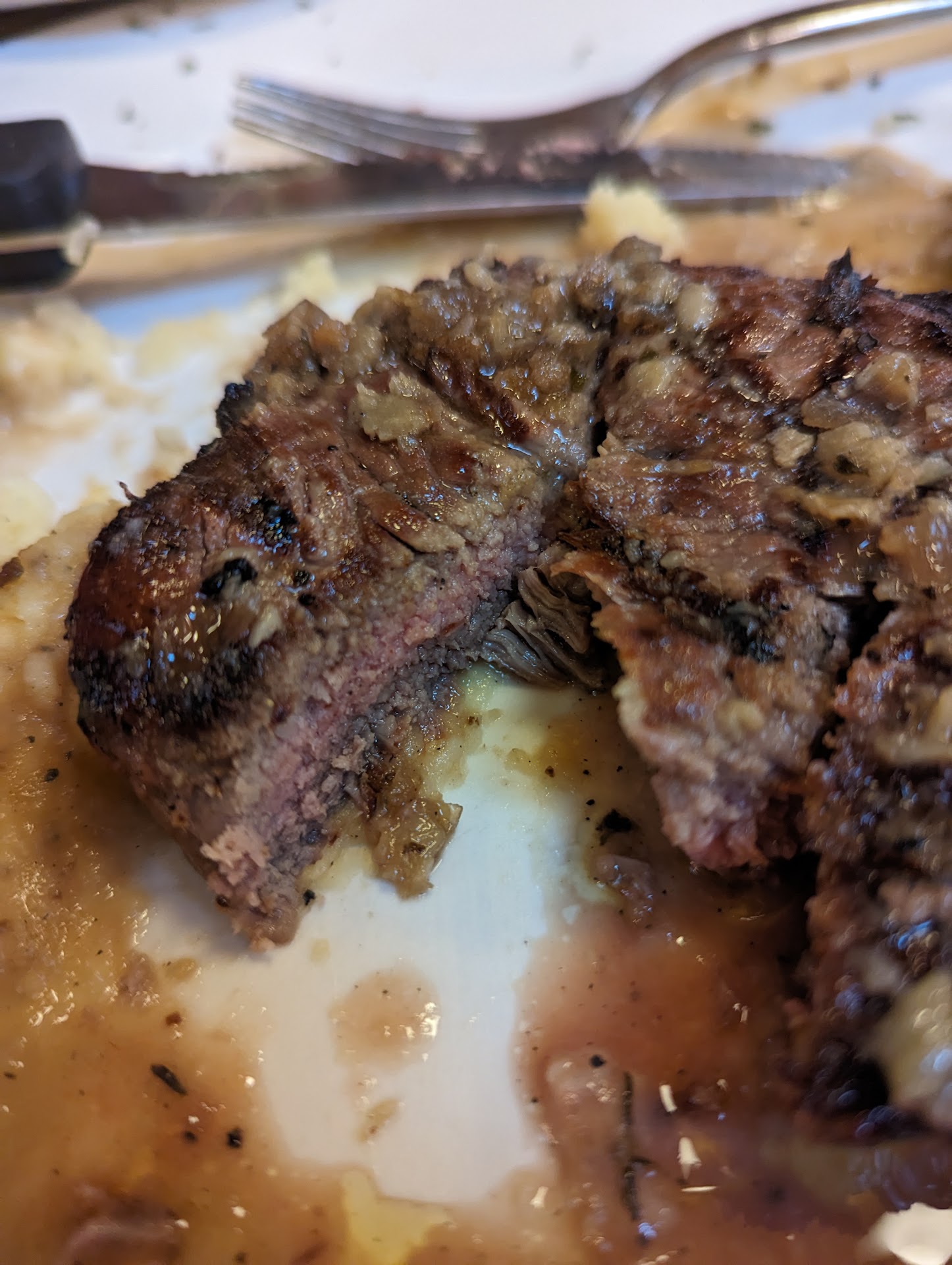 The eggs Benedict was surprising in that the hollandase sauce had no flavor, while there was nothing WRONG with the order, it just had no flavor. The spouses CFS on the other hand, appeared to be fried at too high a temperature, he described the steak as rubbery, and the steak had actually started to curl and did not sit flat on the plate, it was wavy.