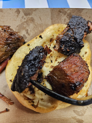 Read moreI'm on the fence with Campfire BBQ. We had dinner there and this is where I'm at- First of all, the photos and pictures of food are likely not what they have. Those reviews are from a different restaurant they previously owned. So... there's that. Which means they don't have battered and fried corn on the cob. Very disappointed. The menu is very limited in choices. I had the Burnt ends sandwich and beans. I was charged $13 for just the sandwich (the sides were extra) but they were wonderful! Possibly the best I've had. The beans were different but they were good. My wife had the chopped brisket sandwich, she was not impressed. The sandwich had too much fat and the potato salad was very plain and very basic. The atmosphere was very basic. To be fair, maybe they haven't finished remodeling. But for the cost, it was a basic atmosphere, no table service, it was expensive. For what we spent, I could go to competitors and get 2 or 3 meat combos, sides, Texas toast, table service, and a different atmosphere. But that being said, I haven't stopped thinking about how good those...