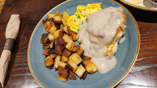 August 17, 2025 - Went for breakfast on a Sunday morning. Expect a wait on the weekends but if you use their app you can join the waitlist. It tells you how many parties are in front of you in line. Was quoted 50 minutes and we were notified in about 45 that our table was ready. Restaurant is bright and clean, servers friendly and efficient. Million Dollar Bloody Mary was a perfect starter! Coffee is good, OJ is really good. My daughter had the chocolate chip pancakes and while the stack is only 2 they are delicious and incredibly filling. I ordered the chickichanga and it was also a generous portion and very tasty! Large chunks of chicken and their seasoned potatoes are a must have! Biscuit with gravy is unimpressive but all the food we ordered arrived swiftly, hot and it was an overall great breakfast. Will...