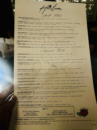The Little Things: A second, unordered bottle of San Pellegrino arrived; we shouldâve declined itâour oversight. One microbrew wasnât what the guest expected. The server kindly replaced it but didnât mention the added charge. Minor? Yesâbut noticeable. For a restaurant with Heirloomâs image and pricing, such lapses, along with the steak miss, accumulate. Guests can always send food back, but that either cools everyone elseâs meal or leaves one diner finishing aloneâand re-fires rarely improve much. In my experience, these matters could have been handled with a bit more care. Would we return? Yesâjust not...