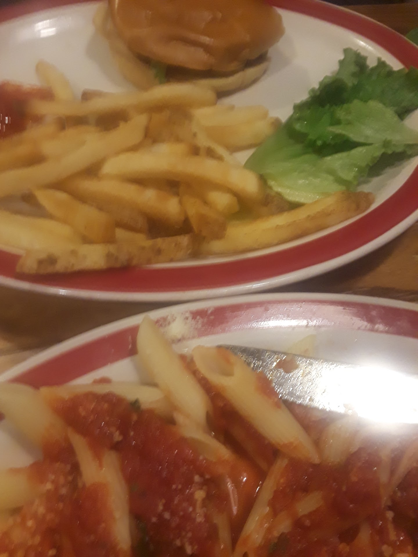 One doesn't go to the pub 99 for a culinary experience inspiring wordsmithing. One does, however, go to the pub 99 when in need of a electric car charging station. Which is exactly what drew my wife and I. That, however, is not the muse that inspired this review. My wife and I saddled up to the only vacant area of the massive bar at this fine Revere establishment. The entirety of the bar was full, minus a curious section that wasn't where we sat. Soon, however, we'd learn why. A "Loud talker" was speaking ( nearly yelling ) on her cell phone, highly inebriated, and obviously seeking attention. I wanted to leave almost immediately, however, my wife was enthralled in the woman's conversation so we stayed, ordered our meal, some drinks, and listened to this woman weave drunken tales loudly over her phone. When she requested her next drink, she was told she had to eat. Apparently, shed been there for hours, consuming only popcorn. That's when we realized that at the 99 in Revere, dinner and drinks included free theatre. A managerial escalation later, and there was nearly full blown combat at our section of the bar. And...within a few more moments, almost every patron at the bar had their phones recording the heated situation unfolding. The police arrived shortly thereafter, and our beloved barmate was escorted out, in a flurry of profanity. The food, you ask? Who gives a hoot. This place has some of the best entertainment in the...