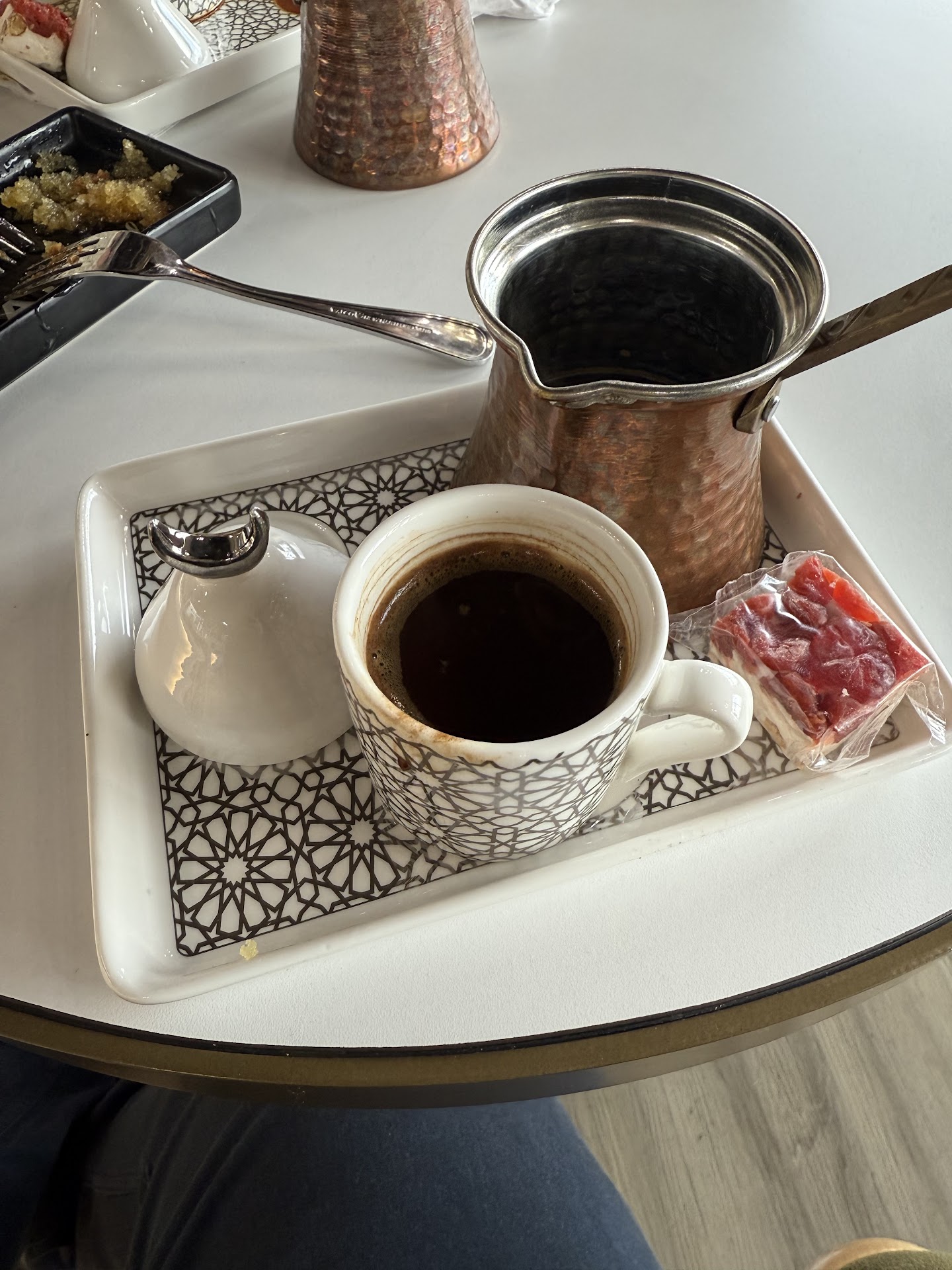 First off, the Turkish coffeeâstrong, bold, and unapologetically rich. I had no clue how to drink it properly, but thankfully, the staff came to the rescue like caffeinated superheroes. They patiently explained the whole ritualâexpect the grounds, rinse with water, add sugar if youâre feeling fancy, and finish with a piece of candy to tame the bitterness. Who knew drinking coffee could be an adventure?