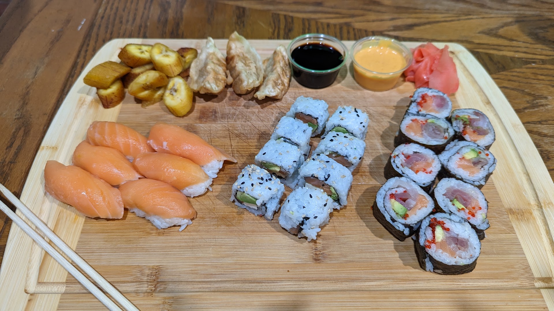 *Disclaimer, the picture is of sushi I got from Flaming Grill and put on a cutting board to feel fancy. A lot of sushi for cheap, the amount of sushi in each pic is ~$10 give or take.
