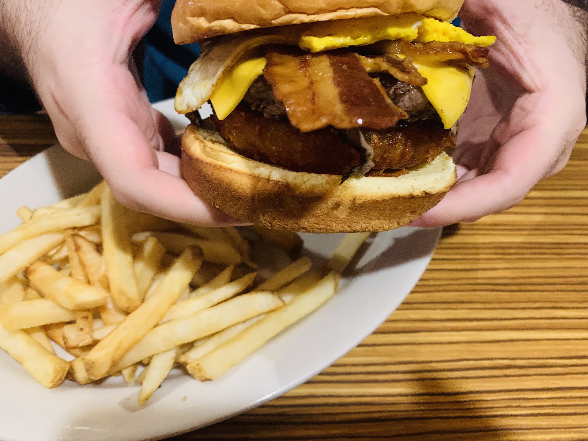We were at the restaurant on a Saturday, so it could have been busy due to the weekend rush. That's understandable. However, we were seated at 11, and the food came at 12:40) dry and/or burnt. Our server (no names, just do better) carried the food out on her arm nearly in her armpit. No gloves. No pop up food serving table.