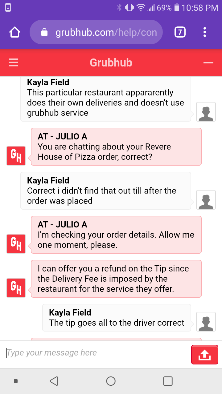 Ordered pizza from Revere House, it was delivered ICE cold and doughie. My fries are also soggy and cold. I called to complain thinking they would apologize and maybe send a new pizza or provide a refund. The first person hung up on me. The second time I called, I told them what happened and the man said no one would ever do that here, we have four phone lines. (I’m not sure what phone lines have to do with someone hanging up on a customer?) The man continued to say it was delivered within the estimated window (it wasn’t, it was 10 minutes late). I get it there is most likely traffic traffic. If I wanted a super quick pizza, I would order from a closer pizza shop, but I use to enjoy Revere House. I order from Revere House often, the one time I have an issue with my order, they basically call me a liar saying there is no way that my food is cold because they delivered it within the window and my pizza couldn’t be doughie because they’re not hand made they’re cooked on a conveyor belt. When I mentioned I was a long time customer, he told me I wasn’t. As I’m writing this review, the pizza delivery guy some how gets back to store within 20 minutes of delivering my pizza (but it took them an hour to deliver my pizza and blamed it on traffic). The guy whom I spoke with then calls me back and tells me, the delivery man was waiting on my porch for 15 minutes (wait what? I just waited an hour for my pizza with a starving 3 year old). I told him that was untrue and the delivery man said he needed to call my phone multiple times for me to answer. I offered to send a screenshot of my phone and he hung up on me. IF he had to call phone multiple times (which he didn’t), why wouldn’t he ring the doorbell? (Do delivery drivers not do that anymore? We provide the apartment number for a reason, right?) Needless to say, I will not be ordering from this disgusting establishment anymore. I have never dealt with such poor customer...