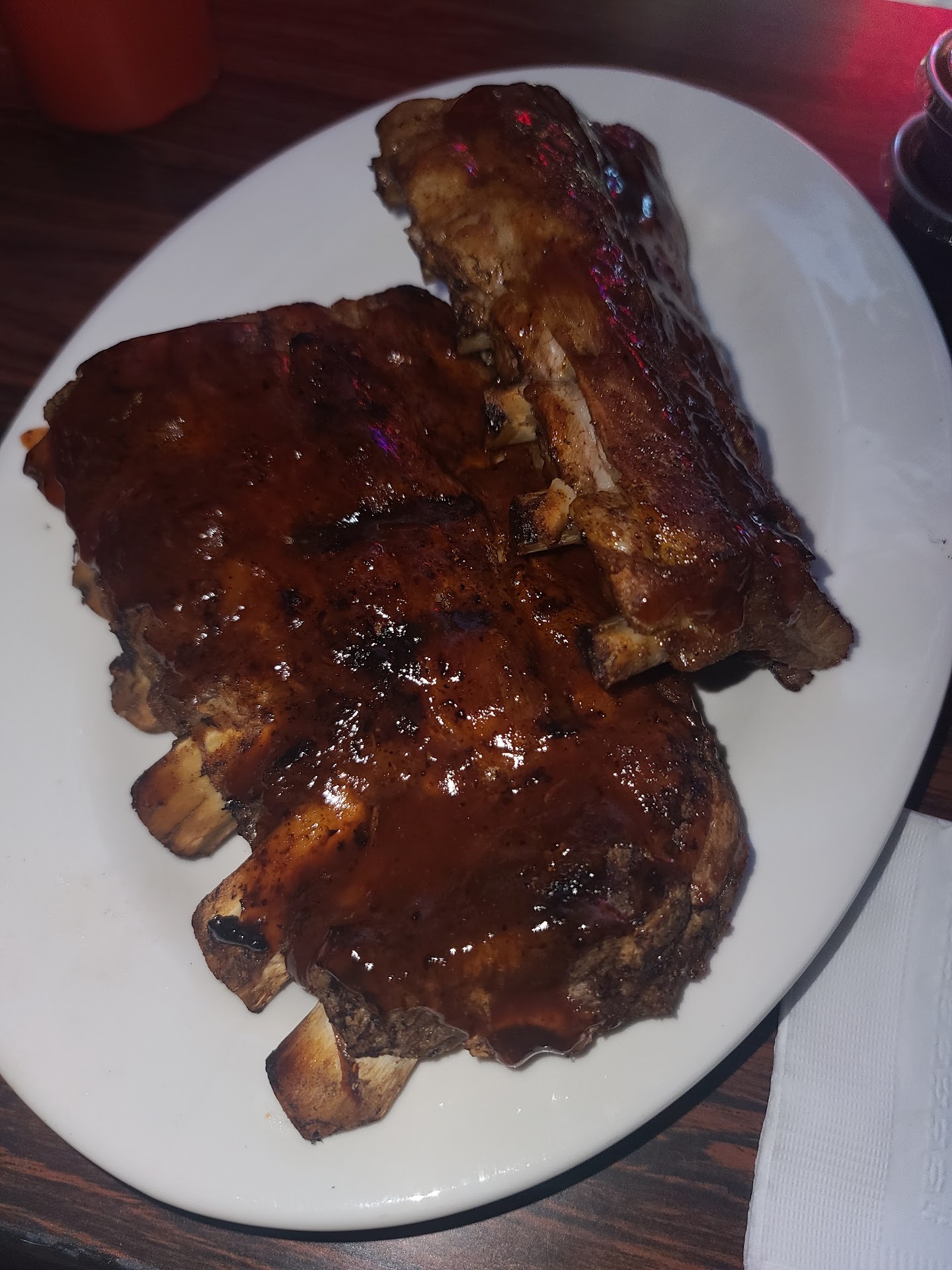 Read moreWent on an adventure for lunch today 2/14/25...decided to try Full Rack Smokehouse bbq, Revere. 😄 i wasnt sure what to expect,but WOW! thats an under statement. Its a communityt/local bar/resturant, we sat at the bar (nice bar) its a little outdated, but TV's along the entire bar with.a variety of sports channels, there is also full lottery. On with the good stuff, drinks were great-lg size (yummy😅), my husband ordered the steak tips med rare w/ o.rings, they were good. I orderd a full rack of ribs w/sauce on it, w/steak fries & rice pilaf, the ribs were cooked to perfection, tender, the sauce had a little smoke added, it wasnt a sweet or spicy sauce, it was a nice mild bbq sauce it was delicious. It was about 2pm, the regulars started to arrive. I can wait to try on a friday/saturday evening. The dinner prices are the same as other resturants serving the...