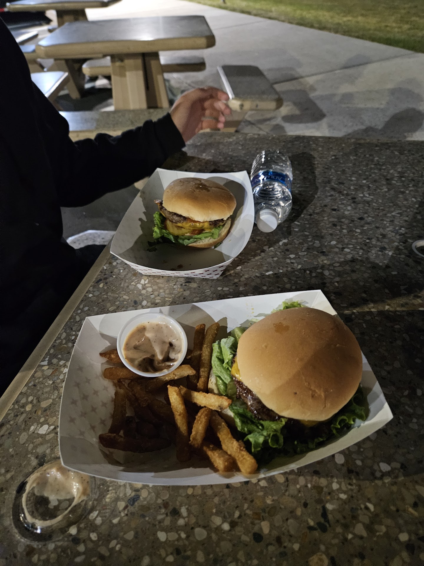 Read moreI got the All American Burger Basket and it was soo good. Juicy and delicious patty, not too heavy/greasy, topped with the works (cheese, pickle, lettuce, tomato, sauce). The cheese was melted perfectly onto the meat. My one criticism is the bun was a little dry, but I'm not hung up on it. Also the off road sauce is 👌🏼 fantastic. The fries - 😙🤌🏼 crispy on the outside, almost like onion ring batter, and soft on the inside. This is millions of times better than McDonald's and cheaper, highly recommend 👍🏼 Also shout-out to Derek, he was so helpful and friendly when we were struggling with the kiosk and the service was way fast! Just make sure you have card because they don't...