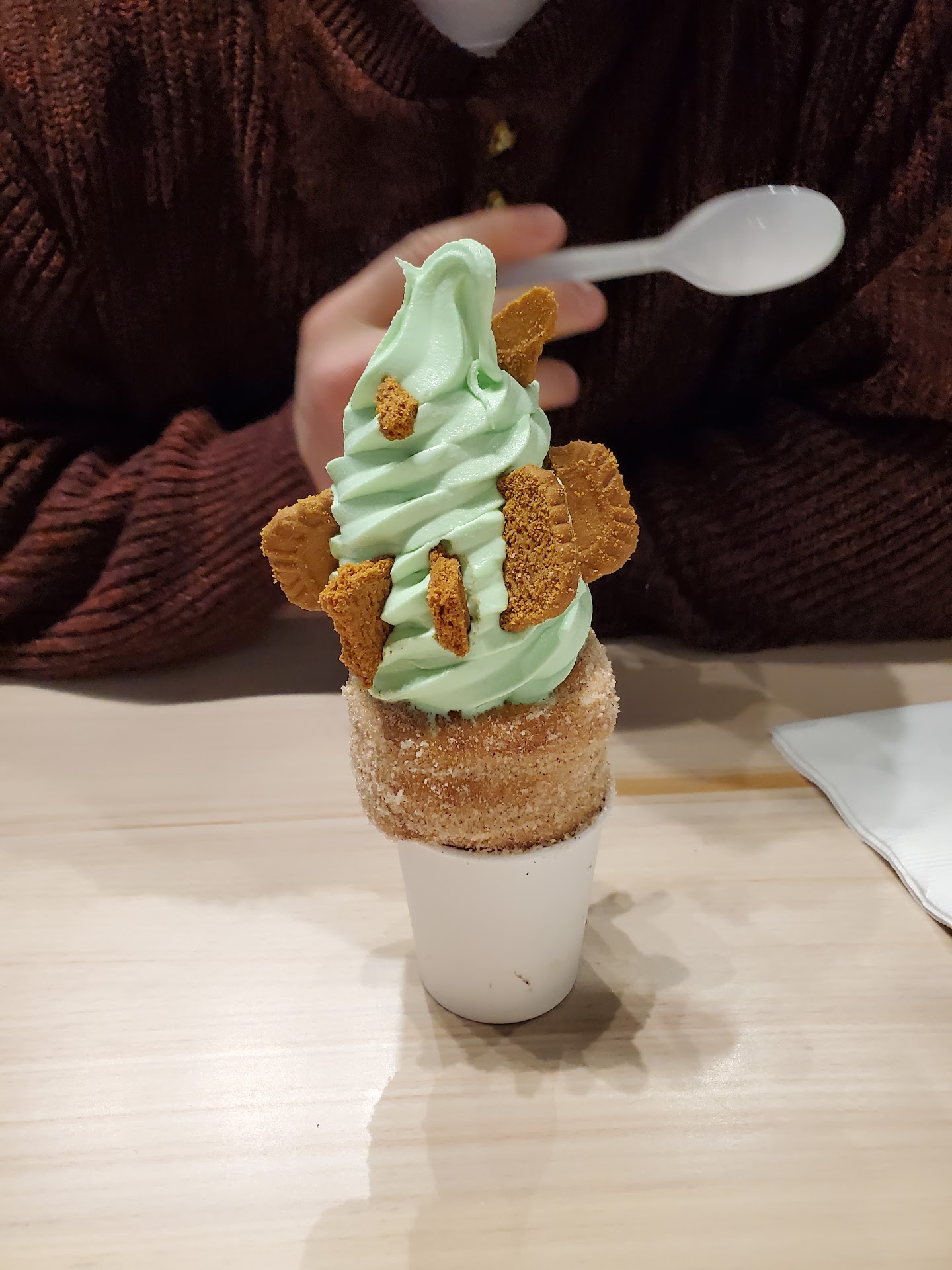 To be honest, it seemed like they were doing it wrong rather than it being their actual product. There is no way they built a biz around overcooked cones and abysmal toppings. It was very skimpy. I had like 5 cookie dough bites in/on my cone