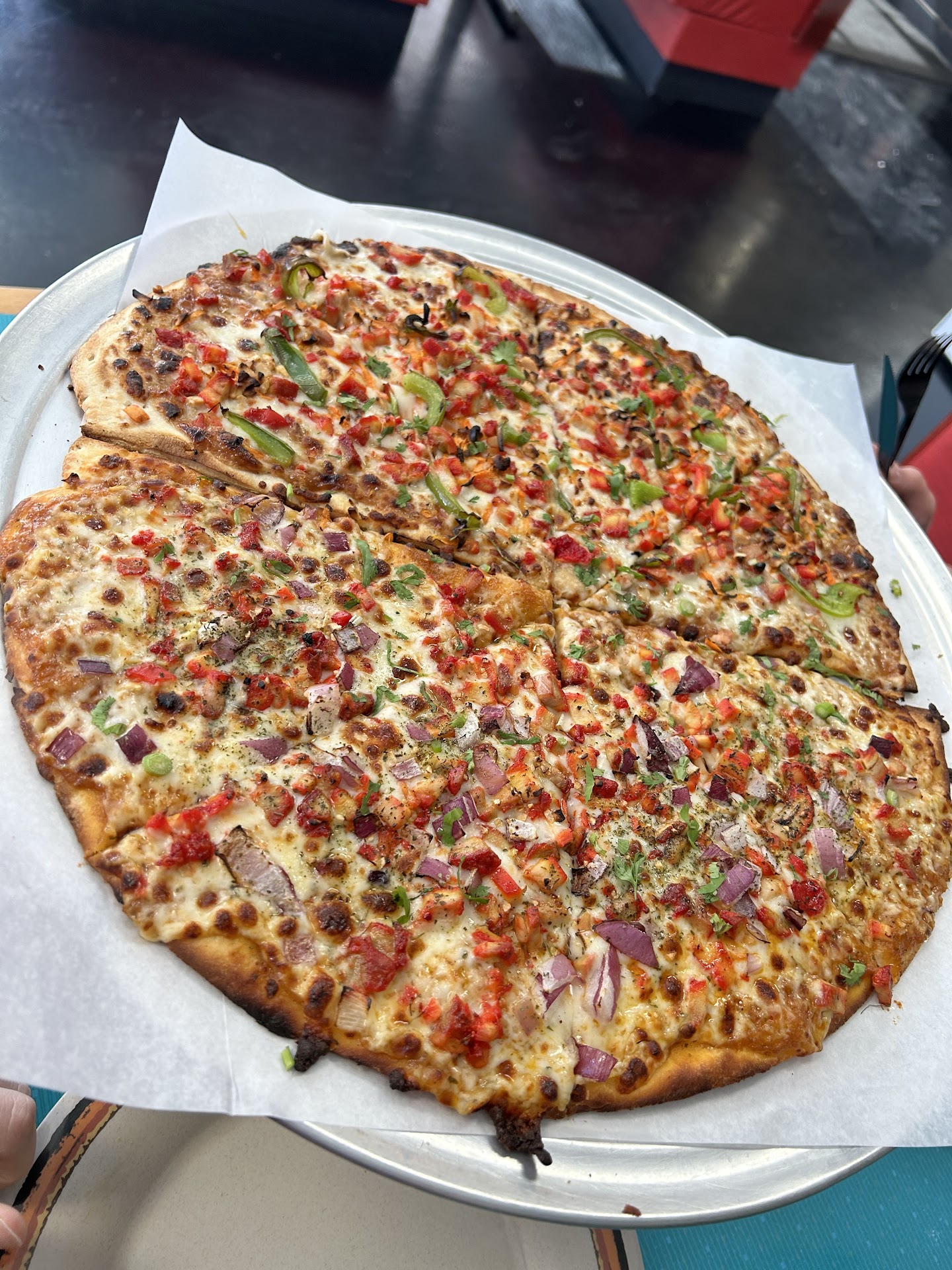 However, lo and behold! My expectations were so fabulously dashed to smithereens! By all that is cheesy and saucy, what a magnificent feast it was! Imagine, if you will, my utter astonishment as I partake in the divine ambrosia that is this pizza. The service was as swift as a cheetah in pursuit of its dinner, efficient to the point of artistry, while the dining area, soda sanctuary, and the sacred kitchen were as immaculate as a newly polished diamond! I indulged in a most delightful half-and-half extravaganza: one side adorned gloriously with Thai Peanut, a sweet and savory masterpiece, and the other, a regal Butter Chicken, infused with a spicy kick that sent my taste buds dancing like a jubilant ballerina! If I may be so bold as to declare my preference, the Butter Chicken triumphed gloriously, yet both were nothing short of phenomenal! This pizza has contented my palate like no other in a multitude of years past.
