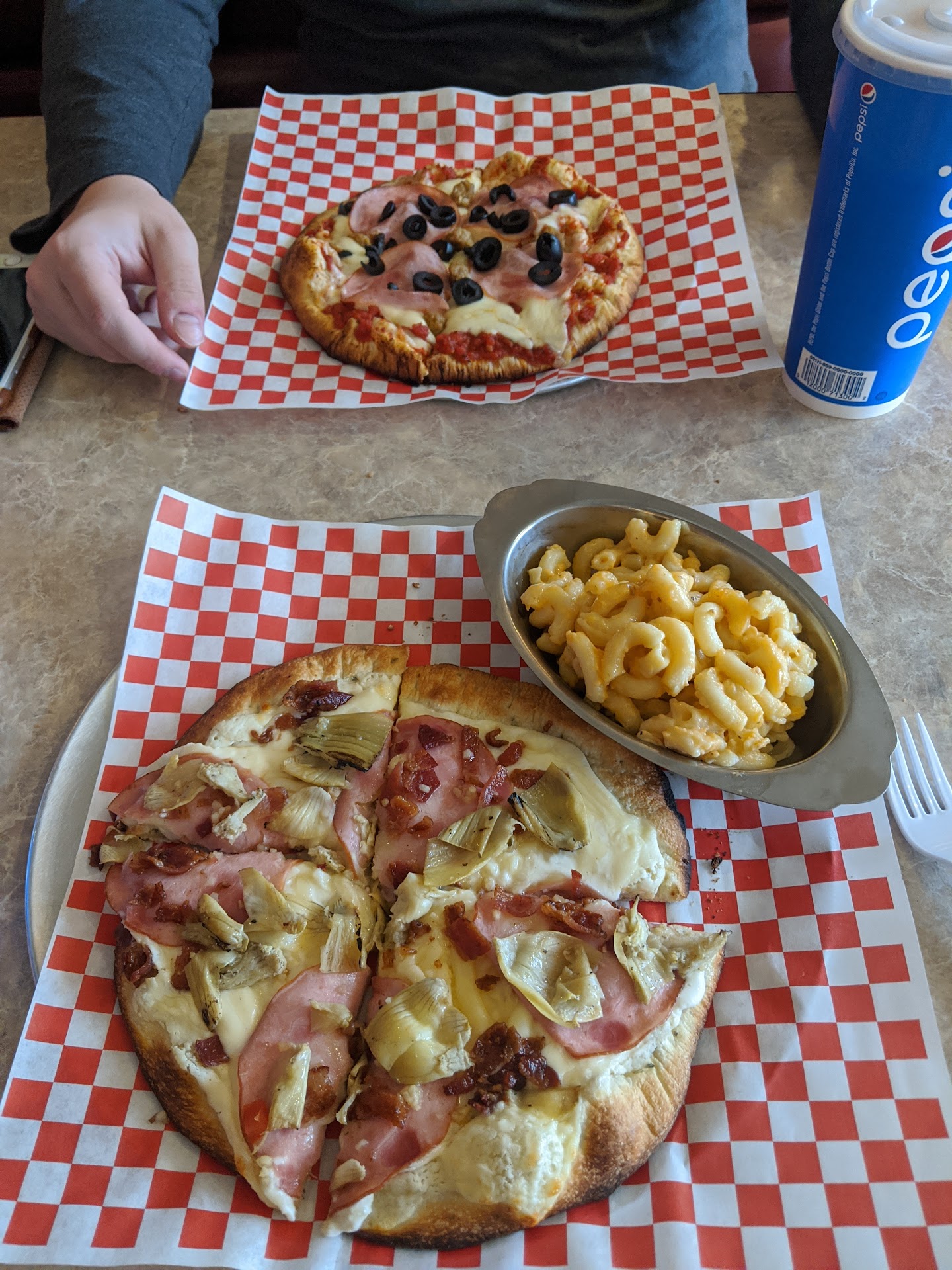 Don't get me wrong, it's great to get a $5 pizza with unlimited toppings when you're willing to forego a normal sized pizza, but both times I have been here, I have been appalled at how this restaurant lets the employees handle the food I'm about to eat. The girls have their hair down, don't wear hair nets or even put up their hair into a ponytail, and grab the toppings for the pizza with their bare hands, no gloves. Once I saw an employee bring in what I assume was a serving of leftover brisket from the hickory. They set down the tray of food on a counter near the pizza toppings, and the employee proceeded to eat the food right before preparing my pizza. I have worked at multiple food industry jobs, including places like Noodles and Company and a smoothie bar. Both jobs had very strict rules about dress code, wearing gloves when preparing food for customers (especially when touching the food), and pulling the hair back into a braid or bun. Some guys with longer hair sometimes had to wear hairnets because it wasn't long enough to pull into a bun. And don't even THINK about eating something on the clock, unless it's in the back room at the table, away from the food prep counters, and during your break. I think the owners of Flat Rock need to seriously re-evaluate the standards they are setting for their employees.
