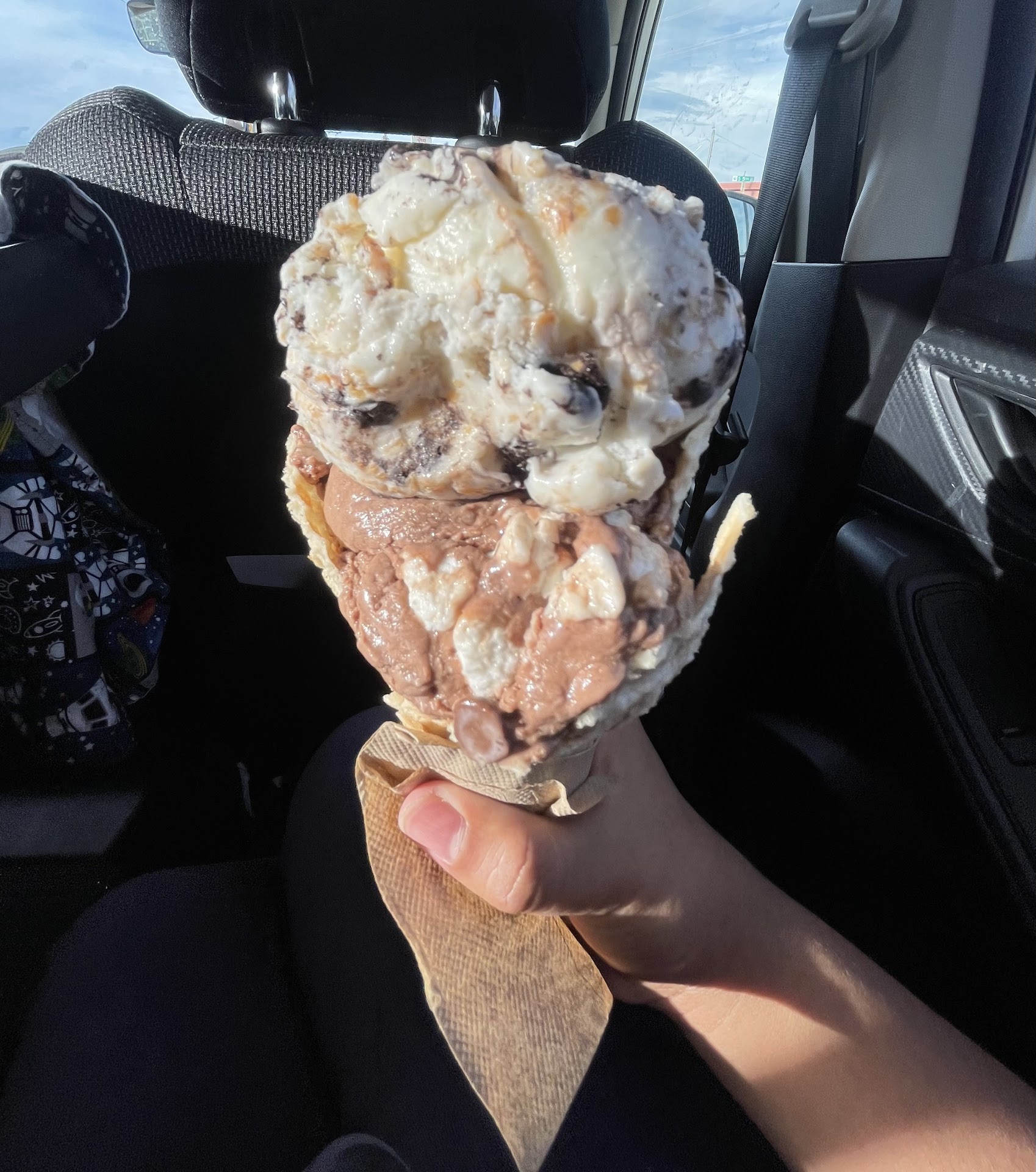 It’s such a shame because the ice cream is awesome but not worth the potential tantrum. Luckily one kiddo was asleep in the car so my daughter was able to get a larger serving of ice cream because she got two itty bitty servings. But even two itty bitty servings are not worth the half price of a single scoop.