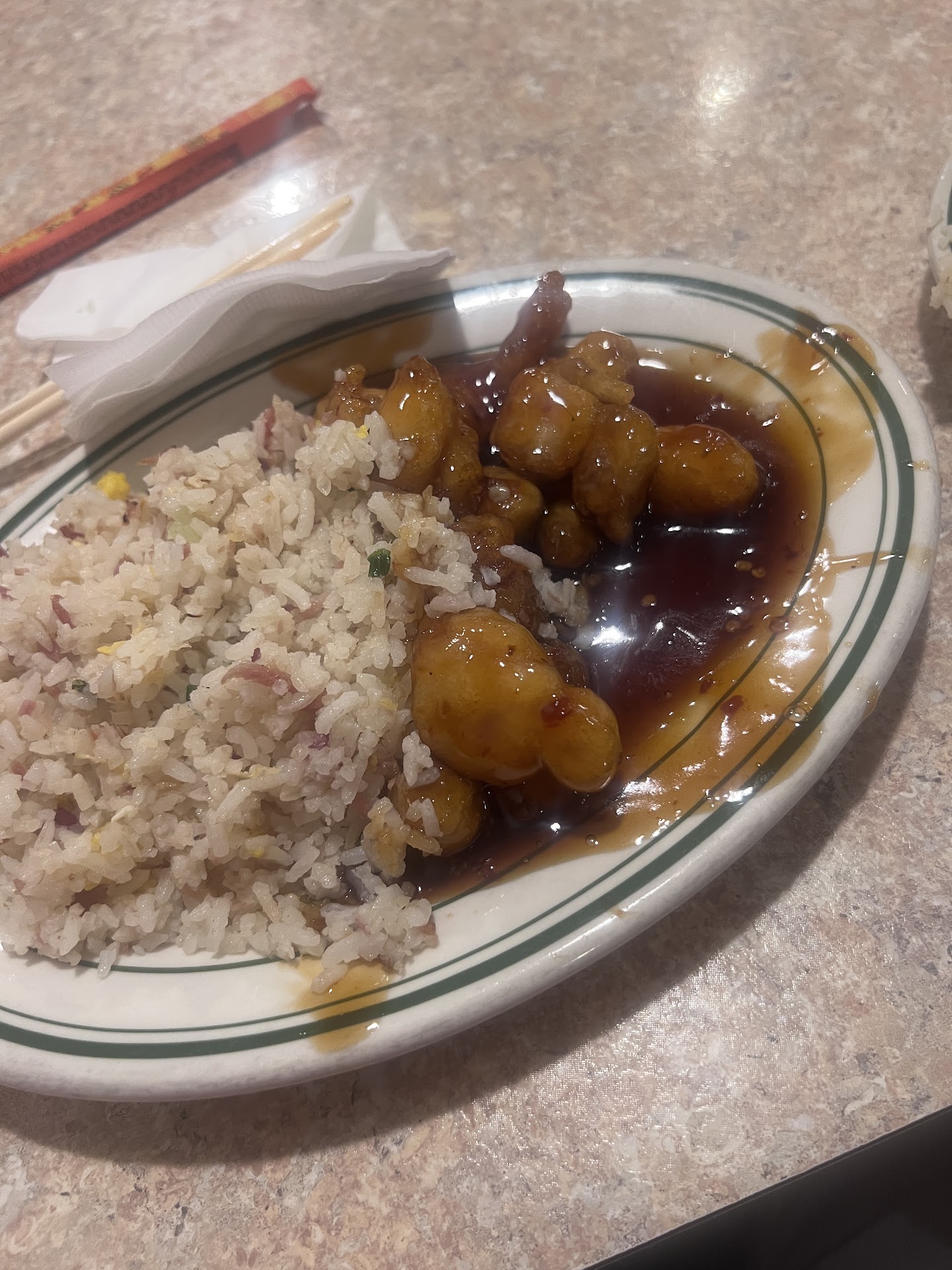 Ā Ā Ā Read moreI was not satisfied with the overall experience that my fiance and i had, but that is not to say that everything was bad. The good: -One of the servers was very respectful of some of the troubles we had tonight -The food was decent, not great, but decent. The bad: We ordered a Dr Pepper and a Diet Dr Pepper, the normal Dr Pepper tasted more like a watered down version of a Dr Thunder, the Diet Dr Pepper was just gross. They were both so bad that we just asked or water instead, and the waiter that was more attentive to us, told us there had already been several complaints about it already. -We waited for 35 minutes from when we ordered the food to when we got it and we only had 2 plates of food. A party of 7 sitting next to us, who were seated after us, were served before we were. -The table seating is very cramped, so unless you are lucky enough to get a booth, or the one table set by itself, you are going to be sharing elbow room with strangers. -You can get the same food (the exact same menu) that tastes 2-3 times better at New Fongs. Good/Bad: When we went to pay we told them about our dissatisfaction with the drinks, the waitress was very apologetic, and took them off our ticket, but the manager standing next to her was very rude in how he handled the situation.