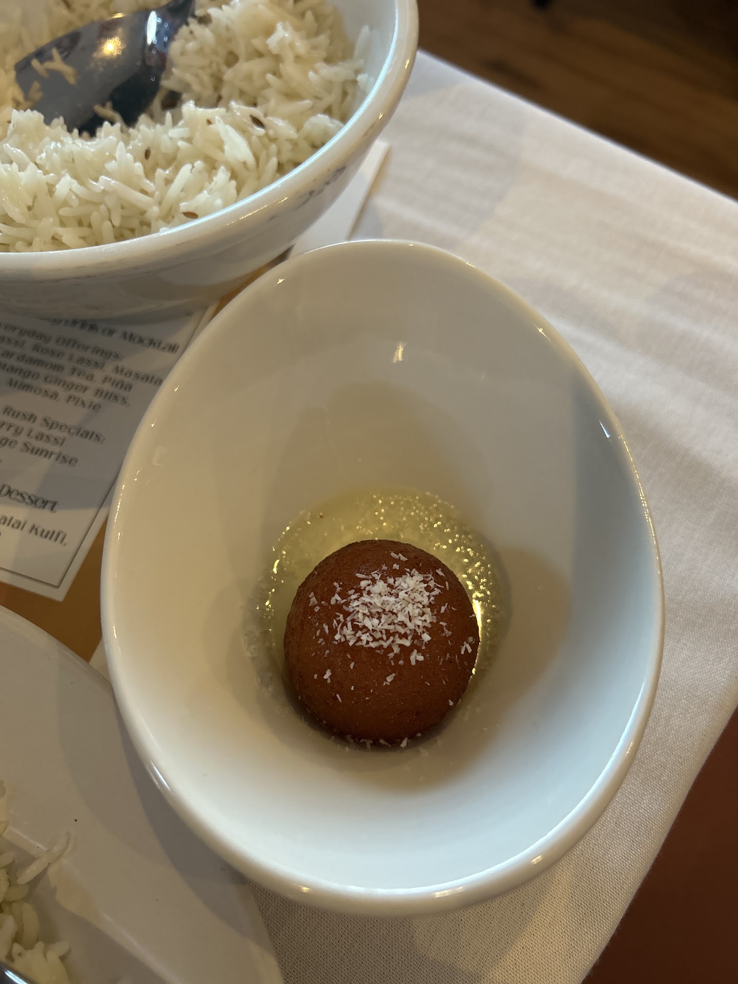 Read moreOh, dear reader, prepare thine taste buds for an odyssey of flavor unlike any other, as I regale you with the tale of the most illustrious Indian culinary feast that hath ever graced my unworthy palate! Verily, from the very nanosecond I didst vacate my trusty steed, a.k.a. my automobile, I was assailed by an olfactory symphony that would make even the most stoic of noses quiver with delight—an aromatic assault of curry, ginger, turmeric, and other exotic spices swirling in the air like a fragrant tornado of bliss. Upon crossing the threshold of this delightful eatery, my senses were inundated tenfold by the fragrant embrace of Indian gastronomy, beckoning me with promises of sumptuous sustenance. My dining partner and I were seated with commendable alacrity, thanks to the bustling ambiance of the restaurant rush—which, if I may add, awarded us the serendipitous fortune of complimentary libations and heavenly desserts alongside our main courses. With our thirst quenched by the crystalline clarity of agua and the ambrosial Strawberry Lassi, a concoction so delightful it could make a deity weep, we embarked upon our culinary journey. We summoned forth a duo of Patia—one lamb, one chicken—each morsel a veritable explosion of flavor, prancing exuberantly upon our tongues as if they were participants in a delightful ballet, leaving us ensorcelled by their rich, harmonious essence. And lo! The garlic naan, that divine cloud of bread, was a perfect accomplice to the mango ginger curry sauce, creating a symphony of taste that would make even Bach envious. Forsooth, dessert arrived in the form of gulab jamun, warm spheres of sugary bliss swathed in a drizzle of coconut, reminiscent of warm doughnut holes that made my heart sing. The entire dining escapade was an experience so enchanting that even the gods would have left heaven for a taste! The staff, particularly our enchanting server, Nancy, was an embodiment of kindness and attentiveness, diligently ensuring our cups runneth over, and every whim was catered to with utmost precision. Methinks it would be a travesty of monumental proportions not to return for another encounter with this extravagant feast. I wholeheartedly endorse this establishment with a resounding 10 out of 10 stars, dear...