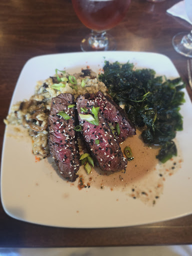 We visited on a Friday evening and did not have a reservation. The place was not overly busy when we walked in. We were seated right away in the bar area, which was cozy and relatively quiet with light jazz playing. It took nearly 10 minutes for our server to arrive at our table and take our drinks order, but after that she was attentive and everything arrived at a comfortable pace. They have a nice selection of wines and cocktails, as well as a decent selection of craft beer on tap.