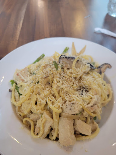 It is a very nice place. Up to date, clean, lovely customer service, clean bathrooms and menu items you won't find anywhere else in Rhinelander (that I know of). Lunchtime is not the place to go if you want peace and quiet. Lots of happy chatter. Food: the noodle dish I had was pretty good, however lacked depth of flavor, even though I added chicken. You could taste chicken and parmesan but little else. The portion was larger than expected and I was full by the end. I am open to trying the other dishes unique...