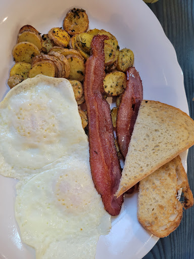 So, I saw a Facebook post advertising their lemon blueberry scones. I am not a coffee drinker and really don't care for scones, but the picture looked delicious. I ordered one. It had just been freshly made and it melted in my mouth. I immediately wanted another, but decided against it since it was not a buffet. I ordered a Carmel latte which came in a nice size cup. It did not have a strong coffee taste- just perfect for me. The next day, I introduced this yummy goodness to 3 more people and told a friend. They also wanted another one. On this second trip my husband and I had breakfast, it was all very good. Our only complaint was the food wasn't very warm. Oh, yeah my husband likes stronger coffee 🤣 Look forward to eating some more of those scones in...