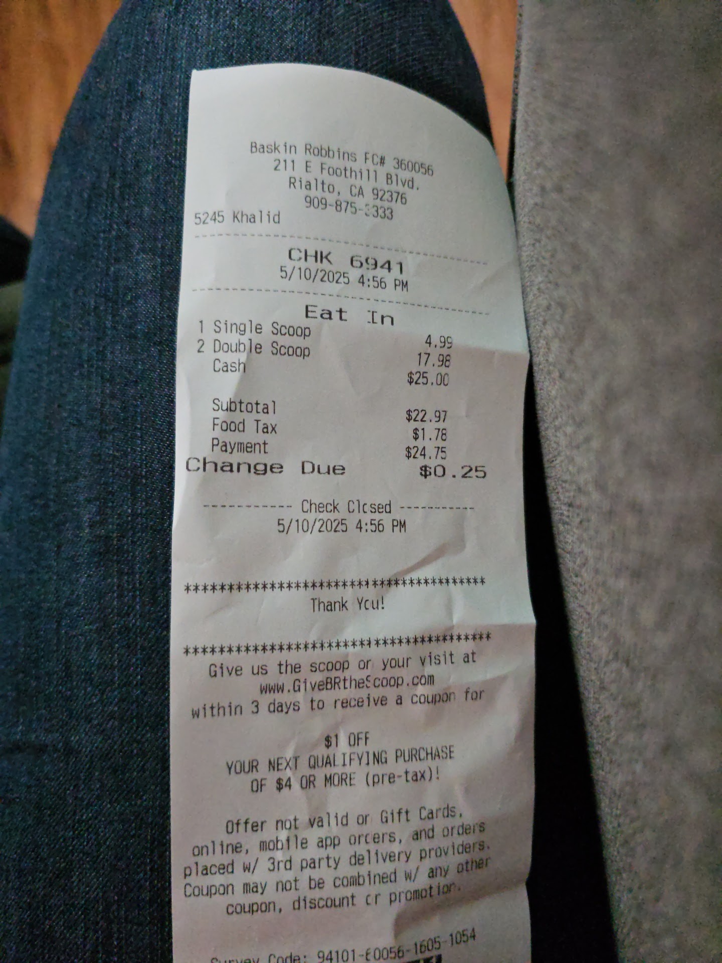 Ā Ā Ā Read moreI asked for 2 balls of ice-cream and this girl only serve like 1 1/2 come on this ice-cream is not cheap, it looked like iy will be discounted from her paycheck i bought 2 cups with 2 scoops and a single I paid 23.75 not cheap and what a disappointment. I being in other Baskin Robin's and the service is better. I didn't take pictures of the ice-cream because it was so hot that started melting right away š I'm never coming back to...