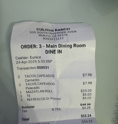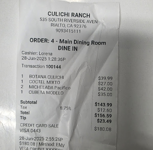 Read more"The food is really outstanding! Each dish was packed with flavor it exceeded our expectations with its fresh ingredients and bold flavors. The service at Culichi Ranch is excellent! The staff is attentive and friendly, making sure your dining experience is top-notch." This hidden gem is a must-try for anyone looking for mexican...