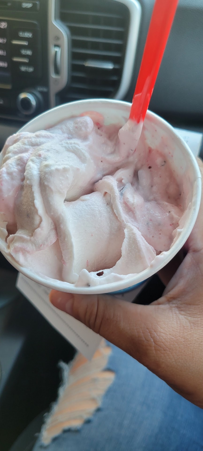 Read moreCame to get the blizzard we ordered the raspberry fudge chocolate whatever it was. Either they were just overwhelmed and work cuz it did seem kind of busy or they just didn't know what they were doing and making the blizzard or they just didn't care. The raspberry fudge didn't taste good at all it had way too much chocolate in it and it didn't seem like it was made right. The guy turned one of them upside down and the other one he didn't I happen to get the one that he didn't turn upside down and it wasn't mixed well at all at the bottom of the cup it was white and runny. My friend complained about it having too much chocolate in it mine had a lot of chocolate in it as well it did kind of throw it off didn't have enough raspberry in it I'm going to guess maybe it was because there was only one person making a blizzards there seem to be a line through the drive through because she was making a whole lot of them before she made ours and there were also six people in the dining area ordering. I would come back a second time and try it again they didn't totally chase me away I'm thinking it was just a busy time and not enough staff. I feel like rated this fairly I 100% honestly,...