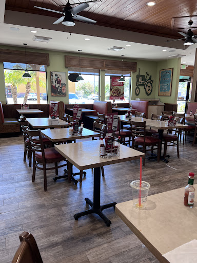 This place is probably not the best to dine in and this is my experience. It may be different for everyone else. When we arrived the worker took a minute to greet us which is fine. She had been attending to someone with an order. We had no idea what to order anyway. When we asked about breakfast she was explaining it well to us. I ordered coffee for my husband and i. My lil one's had 2 waters. Fast forward to the food. We waited not only for the food but we never got our coffee. Until the food was brought to the table. We waited what seemed like forever. While waiting we had no coffee, and a baby crying loud as can be. Now i do understand not something in farmer boys control. But we could not enjoy the food. My daughter didn't find the pancake meal very good because the pancakes had a funny taste to them. it was like all our food was mixed around together when being made or something. I could taste an off taste. i ordered the breakfast burrito and I've had it here before thru drive thru and it was good but this time it felt like it was rushed and very small. Same with my husband's. We didn't say anything and just decided to eat it as is because we had no time left. All in all for our first time dining here it was not a great experience and like i said maybe it was a bad day for us or the location. But is definitely felt like we had...