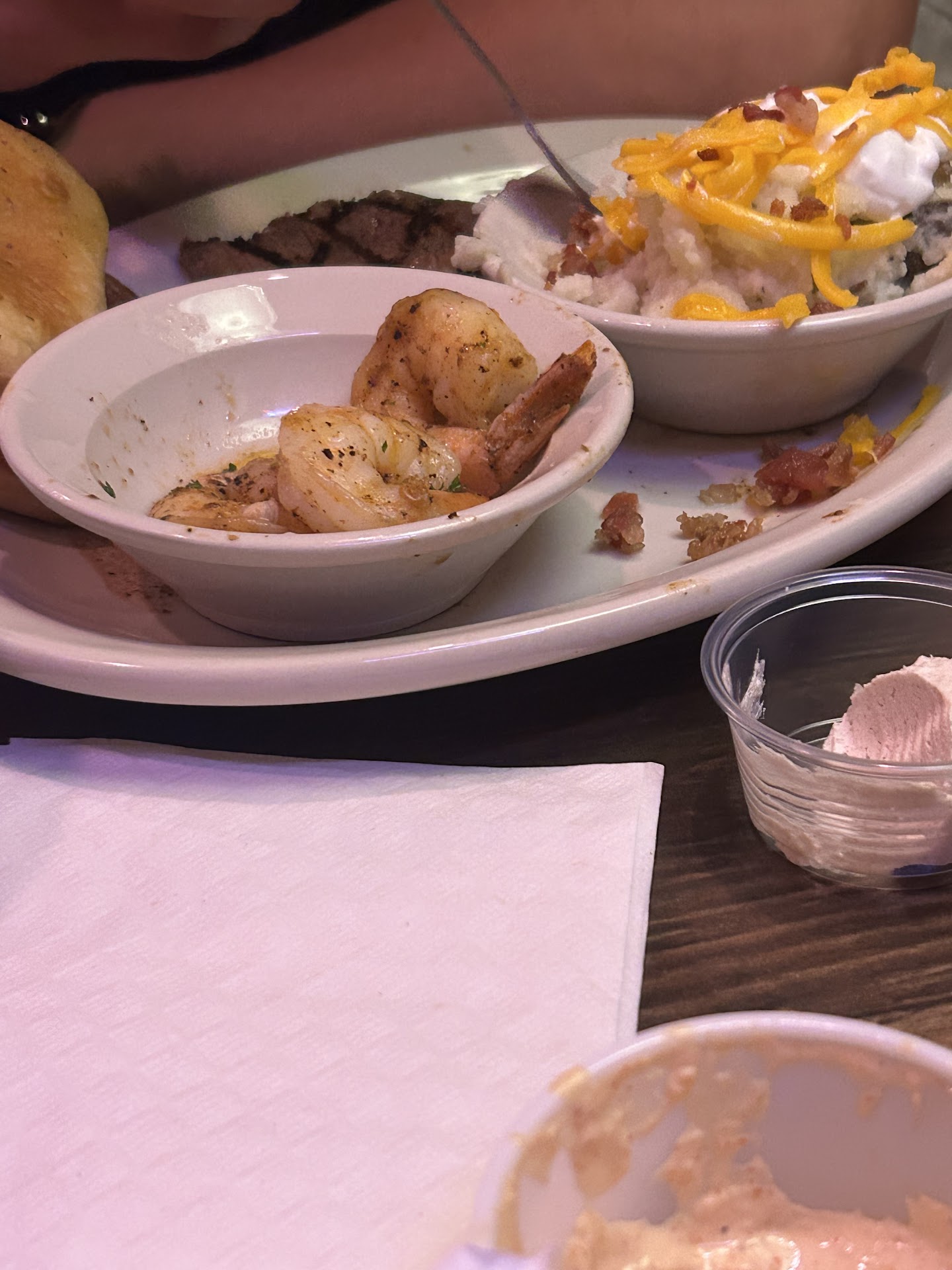 We were not a fan of their cinnamon butter that is served with complimentary dinner rolls, so we just requested regular butter instead (not a big deal, really) but I mention it in case you do ever dine here you know they put a LOT of cinnamon in their butter... which, in my personal opinion, does not go well/blend in with a steak & shrimp dinner in any way... I mean, it is a steak house... and I don't think I want the taste of cinnamon with my steak by default (again, just my personal perspective here... sorry!)