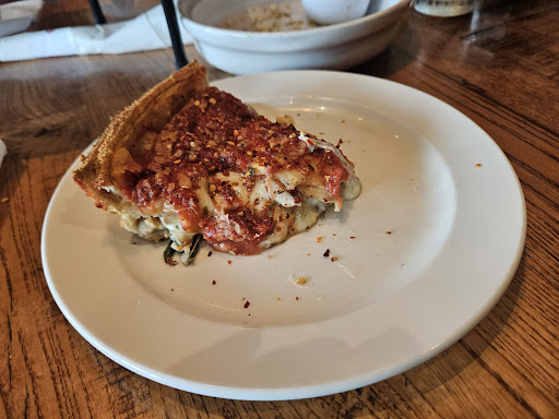 Read moreWe were in Chicago for a wedding and HAD to have some pizza before heading back home. Giordanos was the choice but wish we had gone with another option (Italian Fiesta) which we had heard about but thought our choice was a sure thing. NOT! I hate going into a restaurant and being met with cleaning supplies. The broom and dustpan were stashed right next to the hostess podium. After being overlooked, apparently, and "asking" to be seated, the hostess said, "I was just about to ask if you were dining in." It took a while, yawl! We were seated and ordered Parmesan fries (DELICIOUS X100)! WOW! The pizza??? NOT so much! Our first order (which took 45 minutes to prepare; that's not a complaint. We knew how long it would take but expected it to be worth the wait). It did not come as ordered! Spinach and sausage pizza with mushrooms on half and black olives on the other half. The first attempt had NO SAUSAGE at all, and there were mushrooms on the whole pizza! The remake took another 45 minutes (which were willing to WAIT AGAIN). They got it right, but the pizza was not heated all the way through to the center, so the flavor was lacking, and it made the sauce watery. It tasted like plain tomato sauce. The crust was ok, but I was looking for that buttery flaky crust I'm used to with Chicago deep dish pizza, but, unfortunately, NOT! We each ate a slice, paid the tab and took the remainder, and gave it away. We were sorely disappointed by this experience, especially since we had driven 12 hours and made sure we tried it. It was a big waste of time and money......