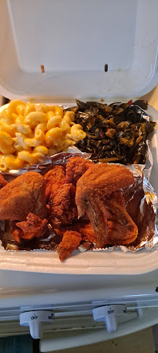 I live close to this place, I saw it on the Black Foodies, I was like wow a new restaurant. Last week I decided to check it out, I walked in place my order for chicken wings, mac & cheese and greens, it was a 15-20min wait. The wings were good but very small, mac & cheese was decent and the green had the vinegar and sweet taste which was fine, they didn't have the sweet potatoes cornbread that was disappointing. What I really didn't like while sitting there waiting on my food, was all the people and children going in and out of the kitchen area. One came out eating another was pulling her braid while on her phone, it started looking a little ghetto. Why can't they bring the groceries for the restaurant to the rear or side of the building? I felt why is sooo many people walking back there. This place is VERY small, I know what it looks like behind the black curtain, I've seem 5-6 businesses come and go from this location since 2015 and non lasted more than a year. I want to support this black own business. But all that traffic walking around back there is not a good look in my opinion. If there not Cooking they shouldn't be back there, it's a sanitation issue for me. The lady who took my order was very pleasant and even offered me a drink. I will probably be back and hopefully not see that type of activity with people coming and going from the kitchen area. Sorry for...