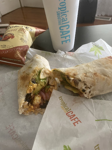 This is by far the worst Tropical location. Every time I visit, the staff is rude and slow. I won’t be returning; I’d rather drive to Tinley Park for better customer service given how much I spend here. This time, I ordered a smoothie combo chicken bacon ranch with chipotle mayo—nothing complicated. The manager, ISES (however it’s spelled), spoke too fast and unclear, and seemed dismissive when she spelled things out for me.