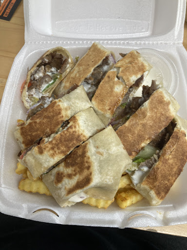 Third. The food. My Gyro sandwich with fries wasn’t bad at all. The fries were crisp and flavorful. The sandwich was perfect. However, my s/o’s food was incorrect and had way too much sauce. He had the Beef Shawarma over rice. They didn’t include the pickles like in the picture, and again, the sauce was globbed on there instead of drizzled. The salad that was included in it was smaller than the picture and had no dressing, even on the side. However, the hummus and bread is pretty good, and you get a good serving portion, which is great since you pay $4.