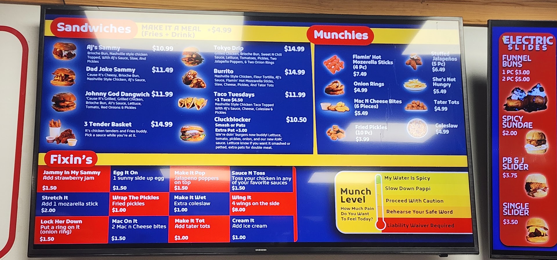 AJ's Hot Chicken isn't just about the food - it's about the experience. The staff's enthusiasm and the lively atmosphere make it more than just a late-night eatery. Whether you're satisfying a midnight craving or looking for a fun spot to hang out, AJ's delivers on all fronts.