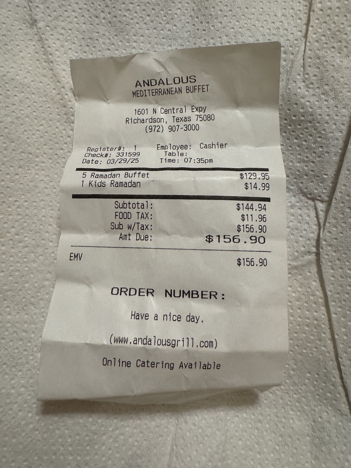 The second—and most alarming—issue was the cleanliness of the plates and cutlery. The hygiene level was far below acceptable standards. I had to search extensively just to find a single plate I could use, and even then, I barely found one. This was particularly disappointing on such a meaningful evening. Had it not been the last day of Ramadan, and had my children not been fasting, I would have left immediately. I was unable to take photos due to how crowded it was, but the situation was clearly unacceptable. The condition of the plates was unhygienic and unappetizing, and raises concerns about possible health risks. I even had to ask my children not to eat the bottom layer of their food to avoid contact with the surface of the plate.