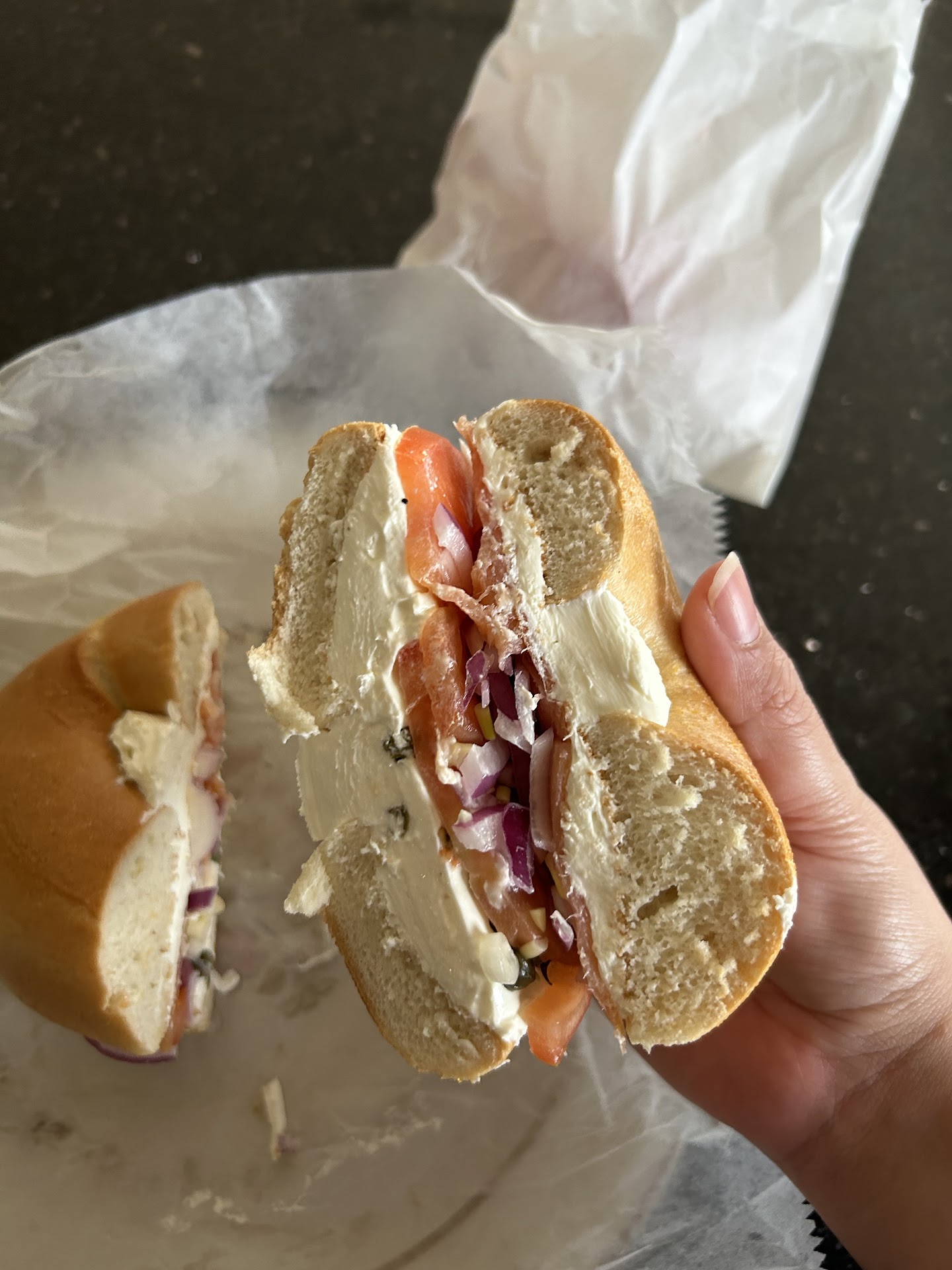 I had a great experience and even though I didn't get my precious everything bagel, I'll be returning to sample more of the menu! My sandwich was great, the herb and garlic cream cheese was super good and the bagel (I got plain) was amazingly tasty. I vaguely remember my New York bagel experience being a bit more crusty, but this place was still amazing! Also, extra points for putting so much bacon on my sandwich.