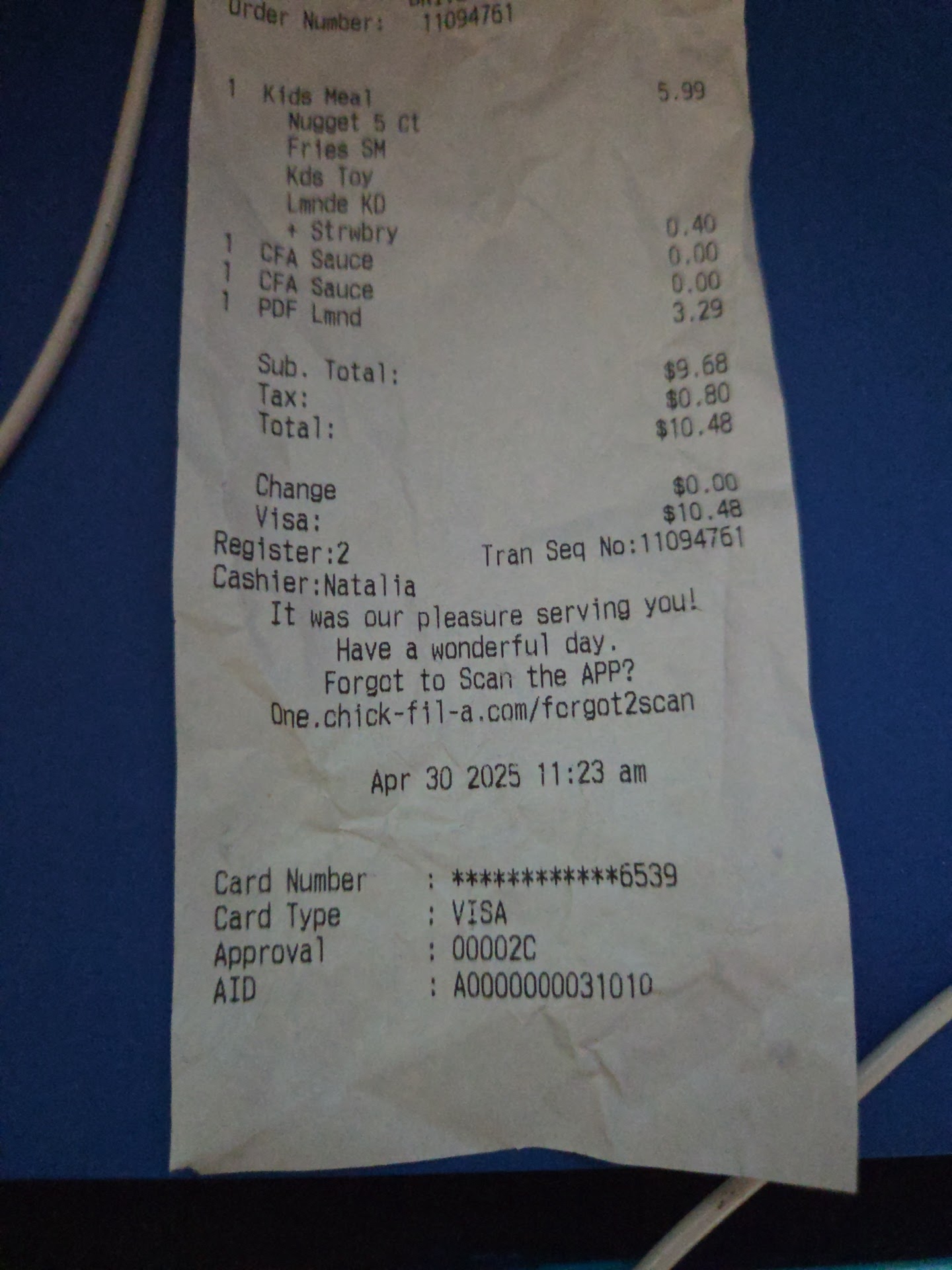 I expect it to be something like that. Because this is not a small family owned business. This is Chick Fil A whose customer service should be way beyond average. But Taco Bell even has better customer service that what was offered here at this Chick Fil A location.