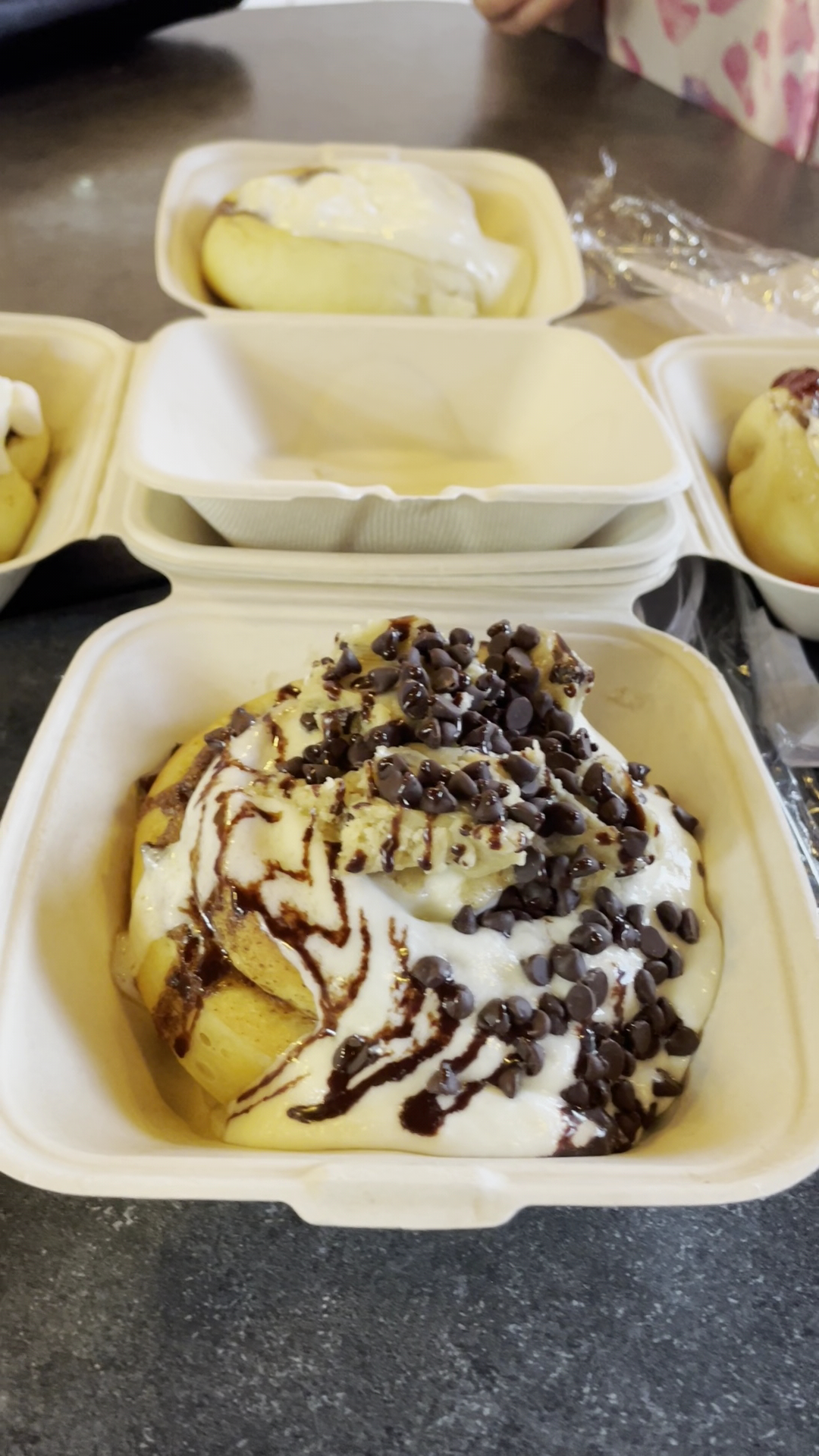 "We all visited this location after dinner on Saturday and each ordered a different cinnamon roll to try! I ordered the birthday cake one which had icing, sprinkles, crushed Oreo and chocolate sauce on top. We thought it was fitting since they took me out for my birthday! I thought it was amazing but I definitely want to go back for the peach cobbler roll. The cinnamon roll is doughy and delightful with a huge helping of icing on top. I will definitely be back next time my sweet tooth kicks in!"