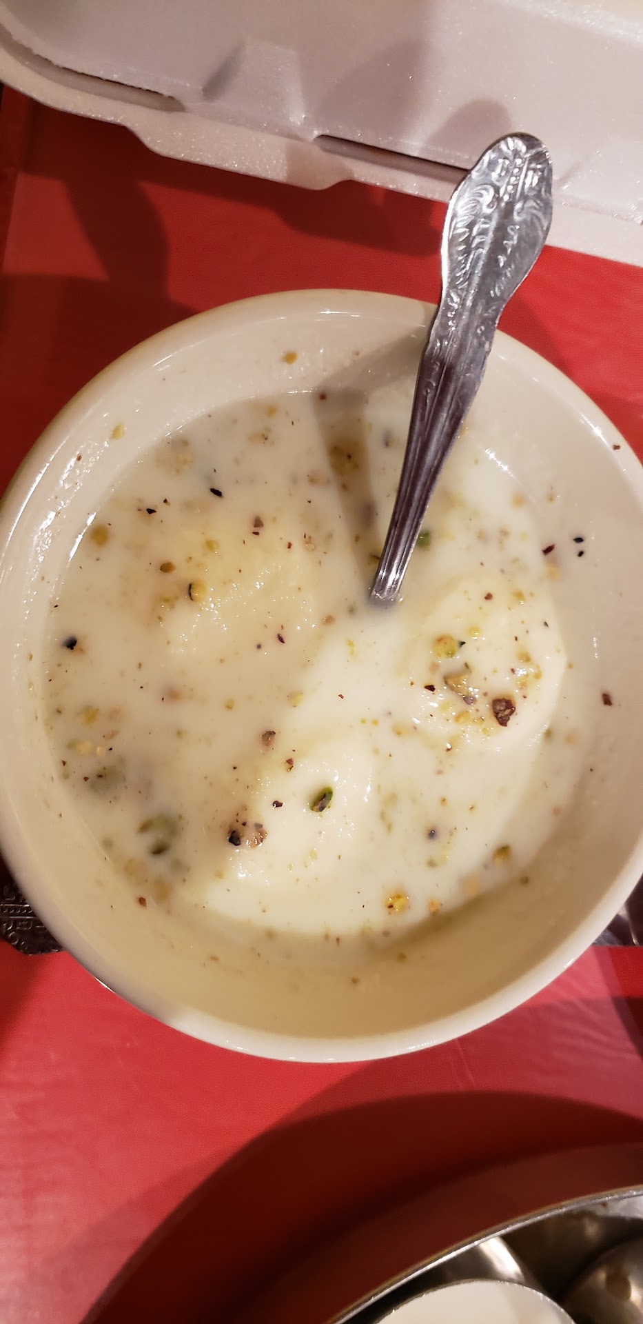 Ras malai(dessert) - 3.0 stars. It was okay. Seemed like they had just microwaved it, since the malai pattie was warm from the inside.