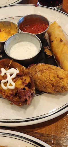 I ordered the sampler, which you’d think would come out as a nice spread of appetizers. Instead, it arrived on a regular plate with everything burned, piled on top of each other, and sloppily presented. Then came the so-called fish and chips. The cod was tiny, smothered in 5–6 layers of thick, greasy batter, clearly fried in old oil, and burnt. Instead of proper chips (what we in the U.S. call steak fries, like you’d expect from the UK or Ireland), they served crinkle-cut wedges. The tartar sauce had no flavor, and the coleslaw was just as bland. Not even a lemon wedge to cut through the grease. Nothing about it resembled what was shown online.