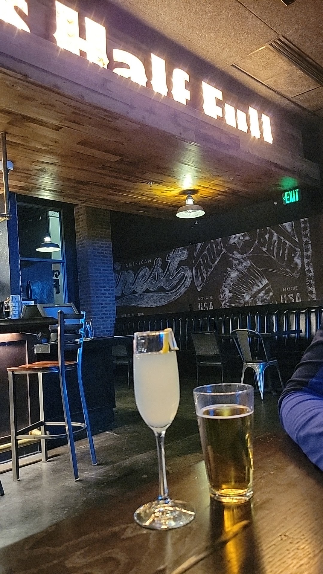 Glass Half Full is an hidden gem in Richardson. This little upscale dive bar is attached to the Alamo Drafthouse and they share a full menu of food and beverages including a nice selection of local and Craft beers, 32 taps, classic and specialty cocktails, and spirits.