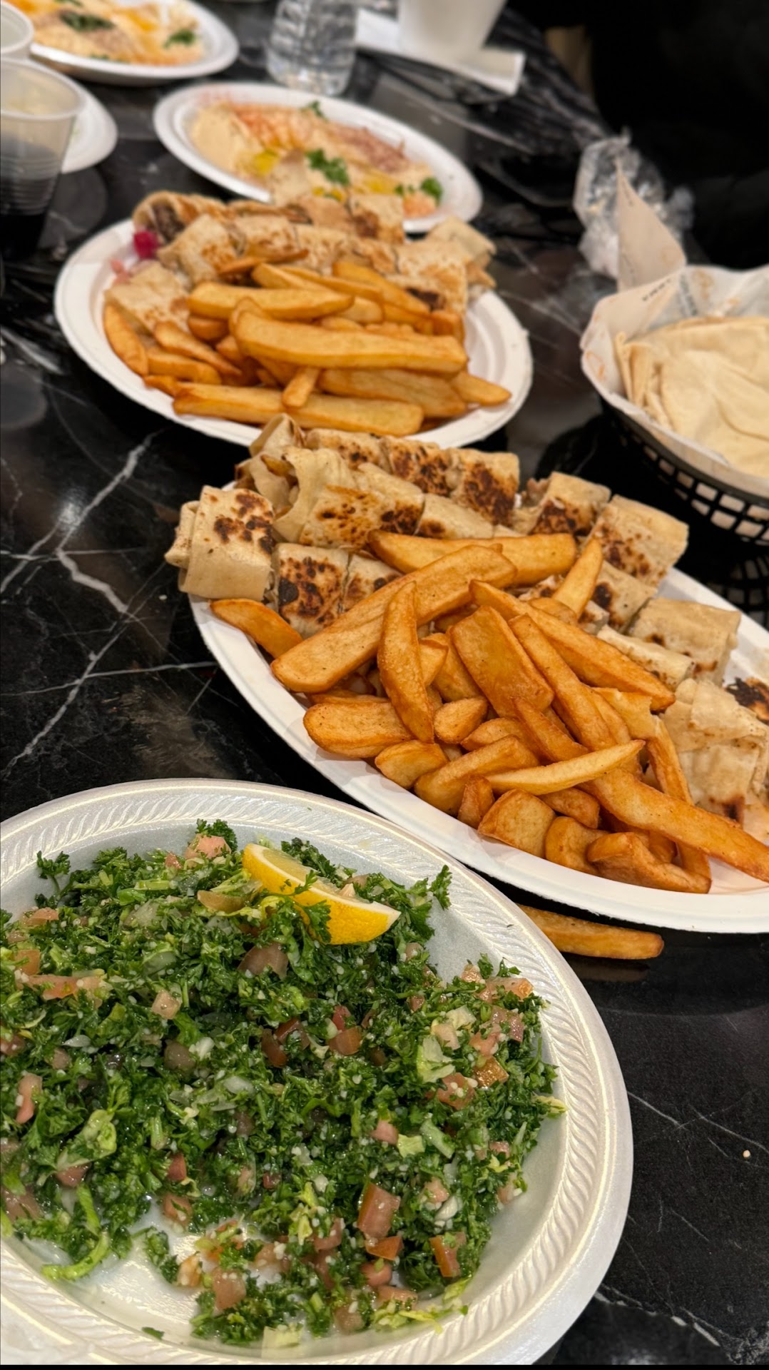 it is going to be a long review so i am going to review the food first we ordered a chicken shawarma plate when they first opened up was not big fan as it was extremally dry and bland but decided to give it another try ordering Ifar box include ( dates, water , hummus, 3 dolmas, kibbeh, lenteil soup , salad , mixed pickles , kataif and main dish ) for 16.99 other people will rather pay 20 and go for a buffet but honestly i do believe the box was a good deal until it WAS NOT ! I end up getting the rotisserie chicken which was really GOOD juicy and crispy yet not burn and the not over power with the spices. the Muhammara bread , kibbeh and kataif were all really good !