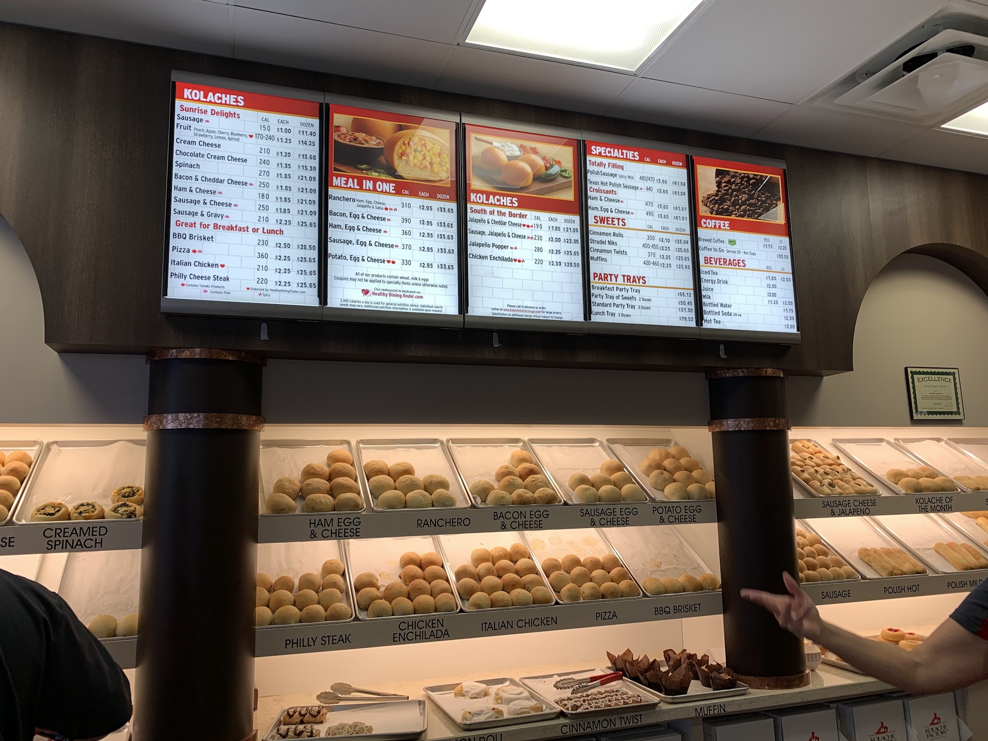 We came early Sunday morning (shout out for being open fairly early on a Sunday!) and grabbed several flavors to try. They have sweet and savory options, and breakfast and lunch oriented kolaches too. We got the cream cheese, sausage, egg, and cheese, bacon, egg, and cheese, and potato, egg, and cheese for breakfast. The service was pleasant enough and got our order out quickly; plus, the price was right at under $15 including a drink we grabbed from the cooler. They had peppy pop music playing from the speakers and there was enough seating for us to sit down and munch before hitting the road.