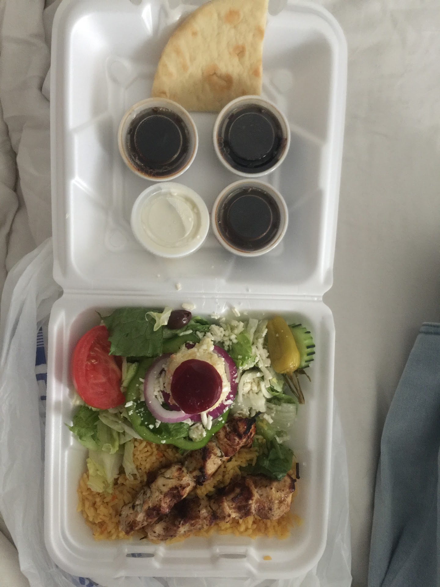 Read moreI walked in with my daughter at 8:45. They had already cleaned up. I asked if I could make a to-go order? He said yes. I was placing my order and asked for the steak souvlaki platter. He said they don't have souvlaki, it's a skewer. I'm looking at the word souvalki on the menu. I point to the menu on the wall and politely say that souvlaki is written on the menu. He wants to argue and say there is no souvalki. He actually gets angry. I stop talking to him and pay for our meals. As I'm waiting for my steak and chicken souvalki to finish, they take my to-go container to the back and out of my sight. I watched him make the salad and put the rice in the container. The to-go sauces were also already in there too. Why take my food to the back?? He brings it back to the front. Then the 2nd guy takes it to the back and brings it back up front. What are they doing to my food? I take the souvlaki and leave the rest of the food. I have ordered from here countless times since they opened. I will never go back again. Why would they take my container to back, twice? I recorded the 2 guys who did this. And then he couldn't make eye contact with...