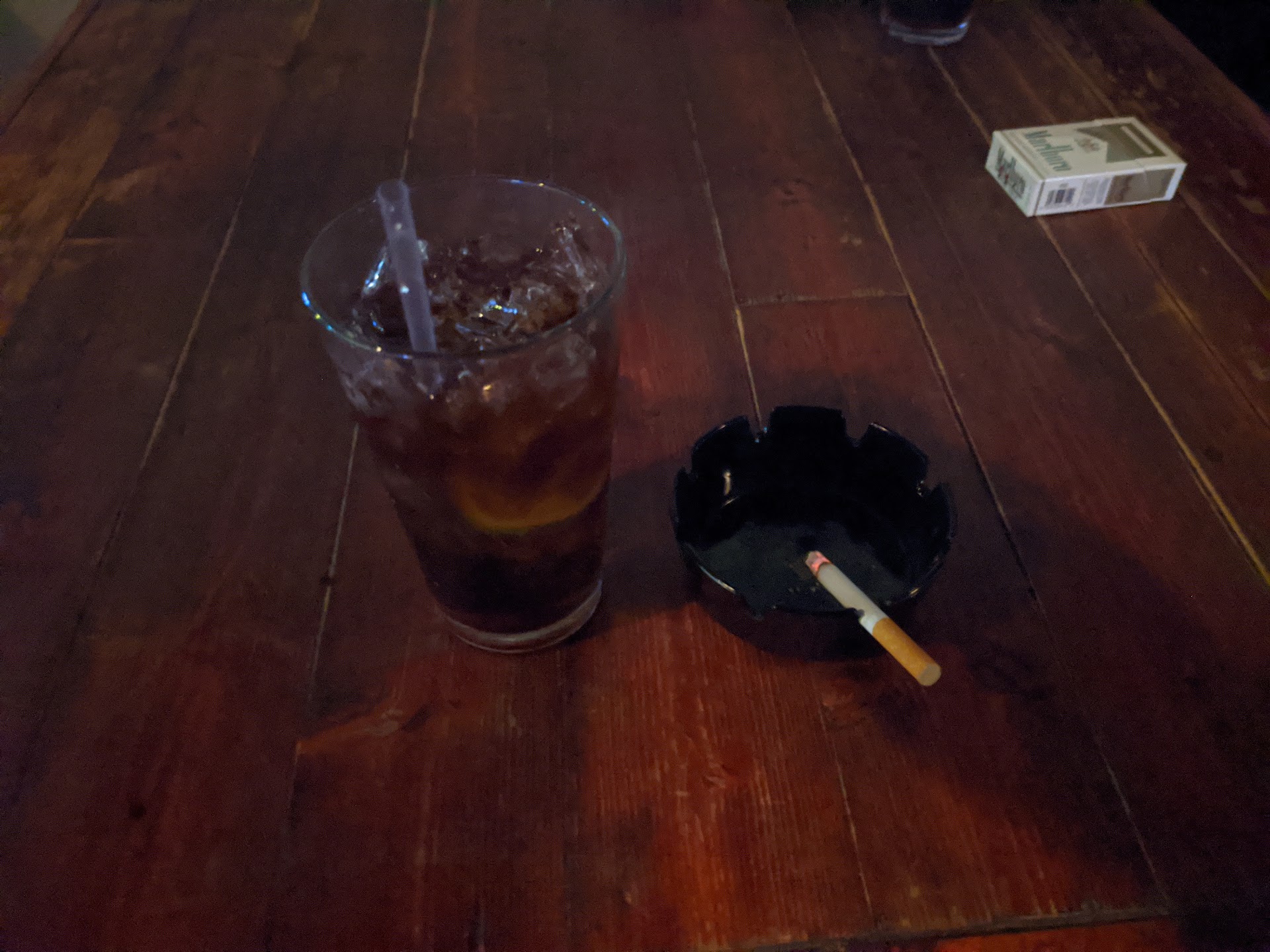 When you first open the door you are immediately hit in the face by a wall of cigarette smoke and depression. There is a huge bar that takes up one third of the place. Pool tables and then a few tables sprinkled in for the groups that want to drink and smoke looking at each other.