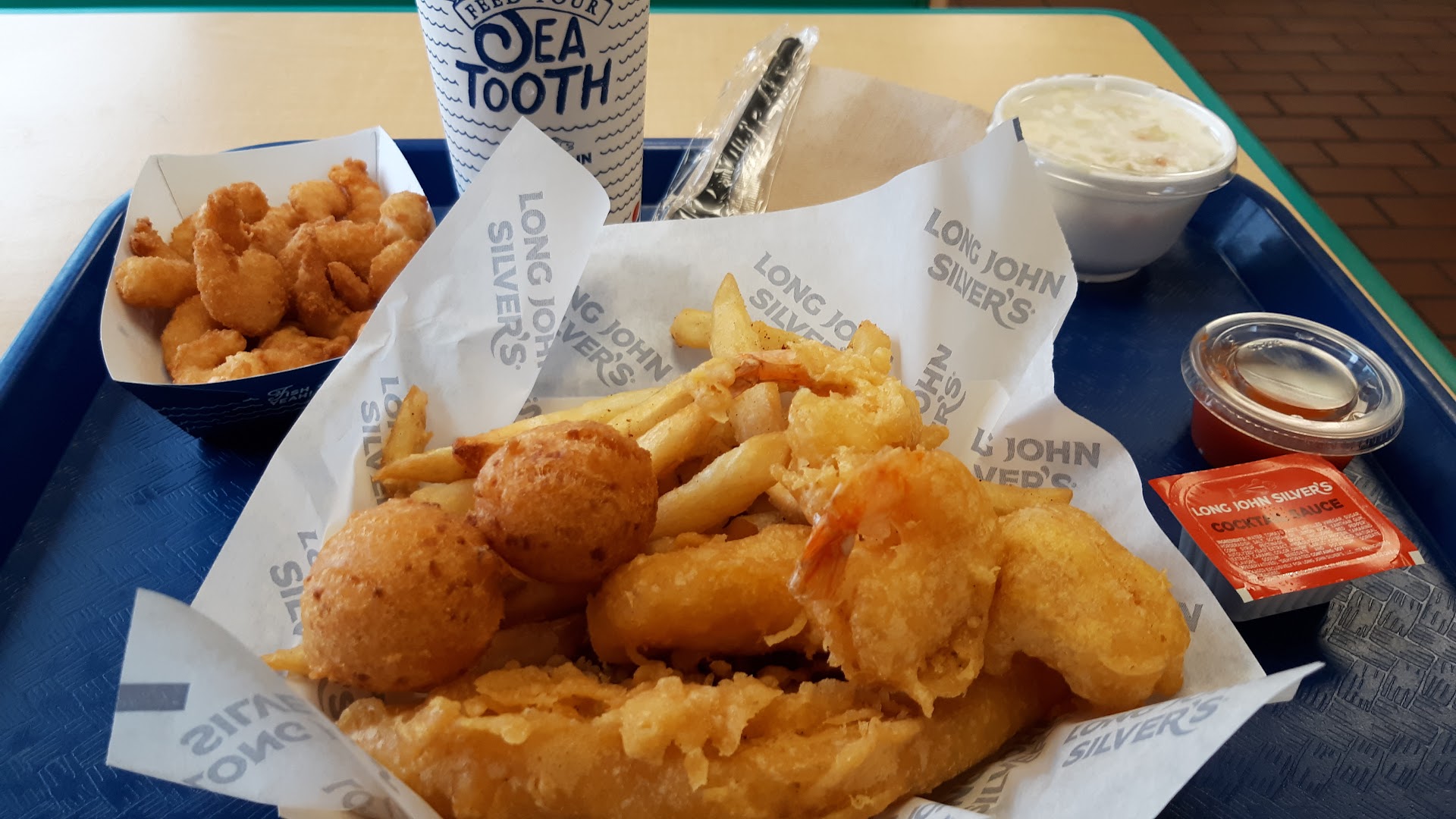 Read moreI wanted fried fish today for dinner. I debated on whether to go to Captain D's bc I drove by it earlier today. But because it was further out I decided to go to LJS instead. I ordered two fish dinners with coleslaw and corn on both for the sides. I also ordered 1 crab cake. I paid and then as I was leaving I wanted to eat my crab cake but guess what? It wasn't there. So I turned back around and went inside and told them I didn't get it. So they gave the crab cake and some french fries. Then I left, and was almost home. I decided to check to see if all my sides were in the bag and guess what? Only the corn was. So I turned back around and went back. I pulled into the drive thru and waited for the person before me to finish. Then I told the guy at the window that I didn't get my coleslaw. He said, oh okay and grabbed two coleslaw and put them in the bag. And he put two extra hush puppies in for my patience. Well that didn't make me feel any better because I got there at 6pm, and by the time I got home it was 6:50 pm. I should have gone to Captain D's! No more Long John Silver. Sometimes you just have to break up with the places you used to love. That's happening more and more these days. Very sad. 😞 Oh and the fish was salty, the fries were disgusting, the hush puppies were greasy and the Coleslaw was okay but I lost my appetite and didn't finish my dinner. I paid $24.33 for this. Not worth it. I find we have to be more picky about where we spend our hard earned money and not at places that don't earn it from us. No more Long...