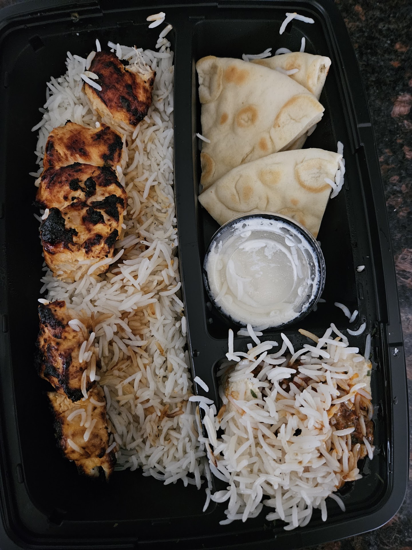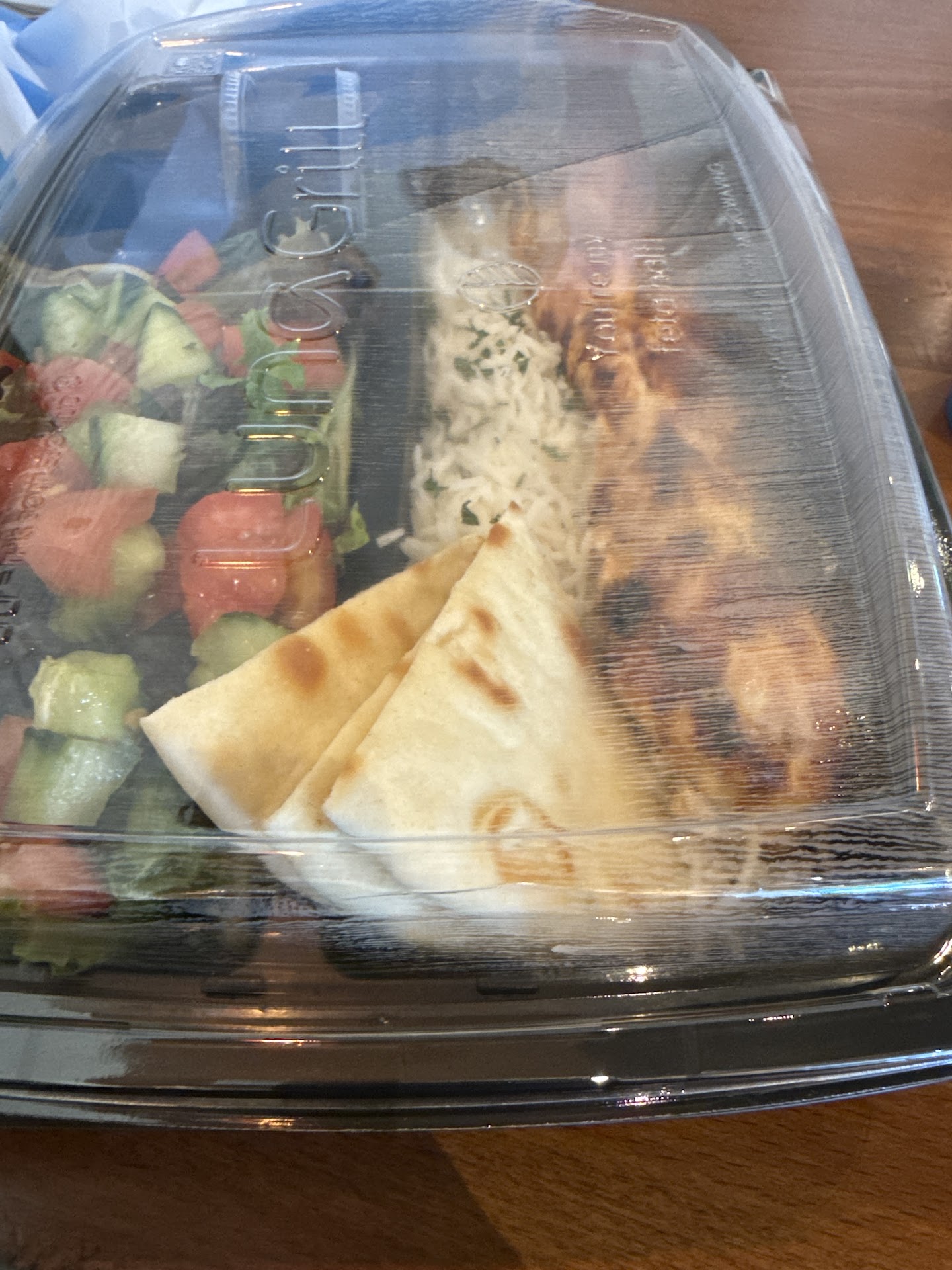 I ordered the chicken kabob plate, and it was absolutely divine. The chicken was perfectly grilled—tender, juicy, and bursting with flavor. Paired with the fluffy basmati rice, fresh salad, and their heavenly tzatziki sauce, every bite was a delight. Dave even suggested adding a side of hummus, which turned out to be the perfect touch—the hummus was incredibly smooth and flavorful, and the pita bread was warm and fresh.