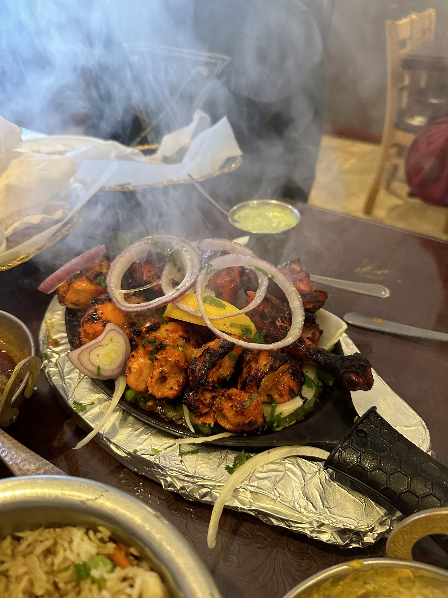 Food: You can’t go wrong with any of the items to order as the menu is quite diverse and also spot on with whatever you choose to order. I highly recommend the tandoori chicken as it gets presented piping hot and loads of flavor. Quite honestly, out of all the chicken tikka masala I have tried, Masala Twist absolutely killed it with flavor and taste. Not too harsh, actually has some heat, and so creamy and rich. Comparatively, the chicken korma is a must. Many restaurants fail to deliver a tasty and texturally appealing korma, and Masala Twist did not disappoint. The Chettinad curry was also not a very common menu item but was packed with flavor and with your choice of meat. The fried rice is very popular which you can also add with your choice of meat, vegetarian or egg. Now everyone loves a good garlic naan, but I highly recommend trying the Kerala parotta …I promise, you won’t go back to any basic naan again. So flaky and delicate which just melts in your mouth. The food is quite affordable and left us with plenty of leftovers to enjoy at home!