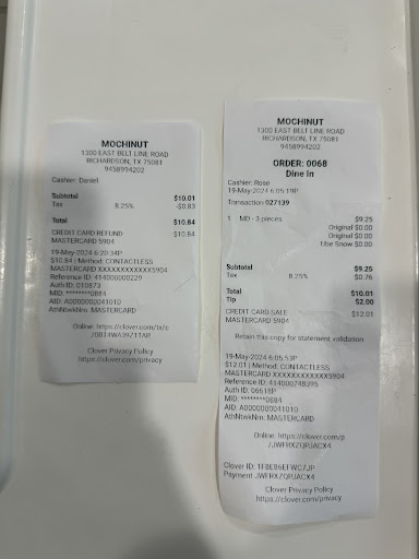 Read moreI visited this location to purchase mochi donuts and had a disappointing experience with the way my order was handled. While preparing donuts for a customer ahead of me, one of the staff members accidentally dropped three original donuts. She handled it correctly by setting them aside and starting fresh, later taking the dropped donuts to the back.