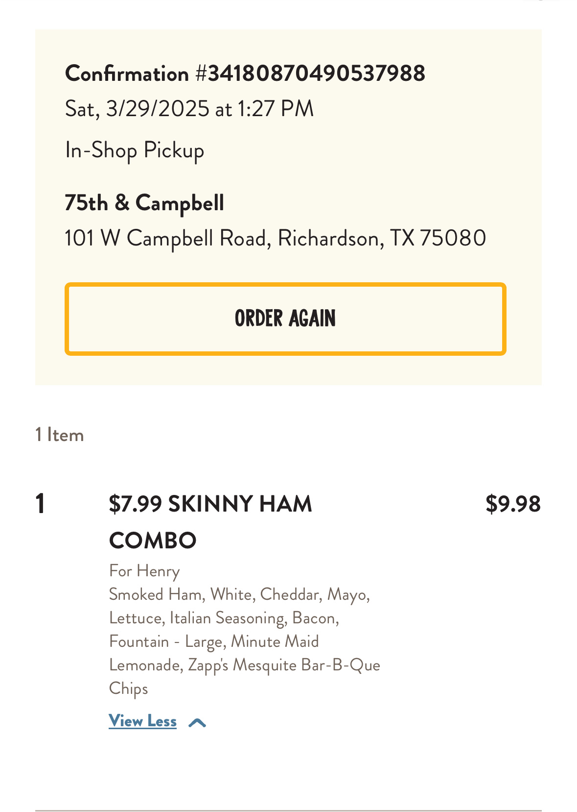 Read morePlaced order online at 1:27 said order will be ready at 1:42 arrived at 1:38 board at pick up showed order still being processed at 1:44 board showed order was ready and on the shelf but no order were on shelf. At 1:47 asked about order and staff member looked around as if order was hard to find and was told it was still being worked on. I like most people was on my lunch break and simply didnât have any extra time to spare due to attendance policy at my Job. I was expecting timely service especially this being my first order and first experience with this company. When asked for a refund because i couldnât wait any longer I was told it would have to go to the district manager for approval so who knows if Iâll get my lunch money back, went hungry my entire lunch break and the rest of my shift and lost my lunch money. I know i should have just went to Jersey Mikes instead of trying somewhere new at least I would have at least gotten my food or money back but to lose both is just incredible dissatisfaction. No kind of apology or real assistance. Waiting 20 mins for a simple sandwich and to have to leave empty handed was very upsetting. I should have just went with my...