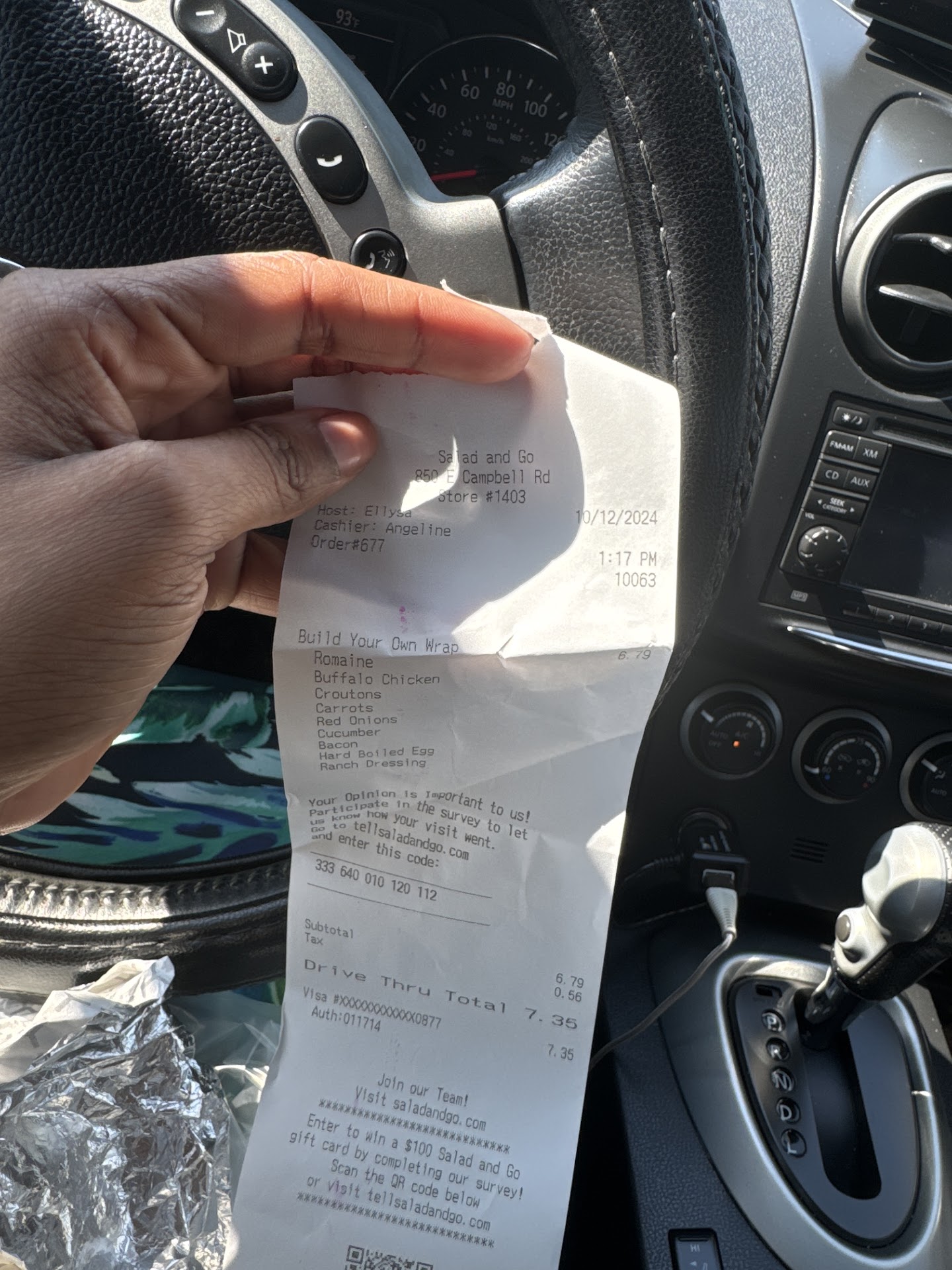 Ā Ā Ā Read moreI donāt even like giving bad reviews yet I love this spot for the few workers that greet with a smile and go above and beyond when needed. Iām appalled at how the service has went down hill in the past couple of weeks. There is two employees specifically that have consistently showed lack of customer service. Those names are Aby and Zenith. I requested a minestrone soup and kindly asked if they can add more vegetables than juice because the first time I ordered I got very little vegetables and all juice so that next 3 visits I specified to add more vegetables than juice and they did just that. On the day Aby was working, she said āWe canāt do that.ā In all my 10+ years of customer service industry, I have never told a customer what I ācanāt do.ā Moving along, Zenith was on duty to work and she was taking the orders. I ordered a BBQ Ranch wrap and a frozen strawberry drink. She never greeted with a hello or how can I help you it was just āWhat would you like?ā Then ādrive to the window.ā After I said āThank you!ā She didnāt respond! I figured she was having a rough day. When I got to the window she was sitting, and Iām sure she was supposed to be standing, in a torn up roller chair and was laughing and giggling with the staff members. When I got my order from one of the employees who is always so kind and generous, I told him the order was wrong(I had gotten the wrap and she put in salad instead). He went back there to correct it for me. I told him āShe is slowing yāall up.ā This is a place myself and my husband always come to just about everyday but the service from those two women are really making me consider not coming back. They need to be retrained on how to properly communicate with the customers so as not offend them. I am not taking this up with the Guest Service either so no need to send a (AI)...