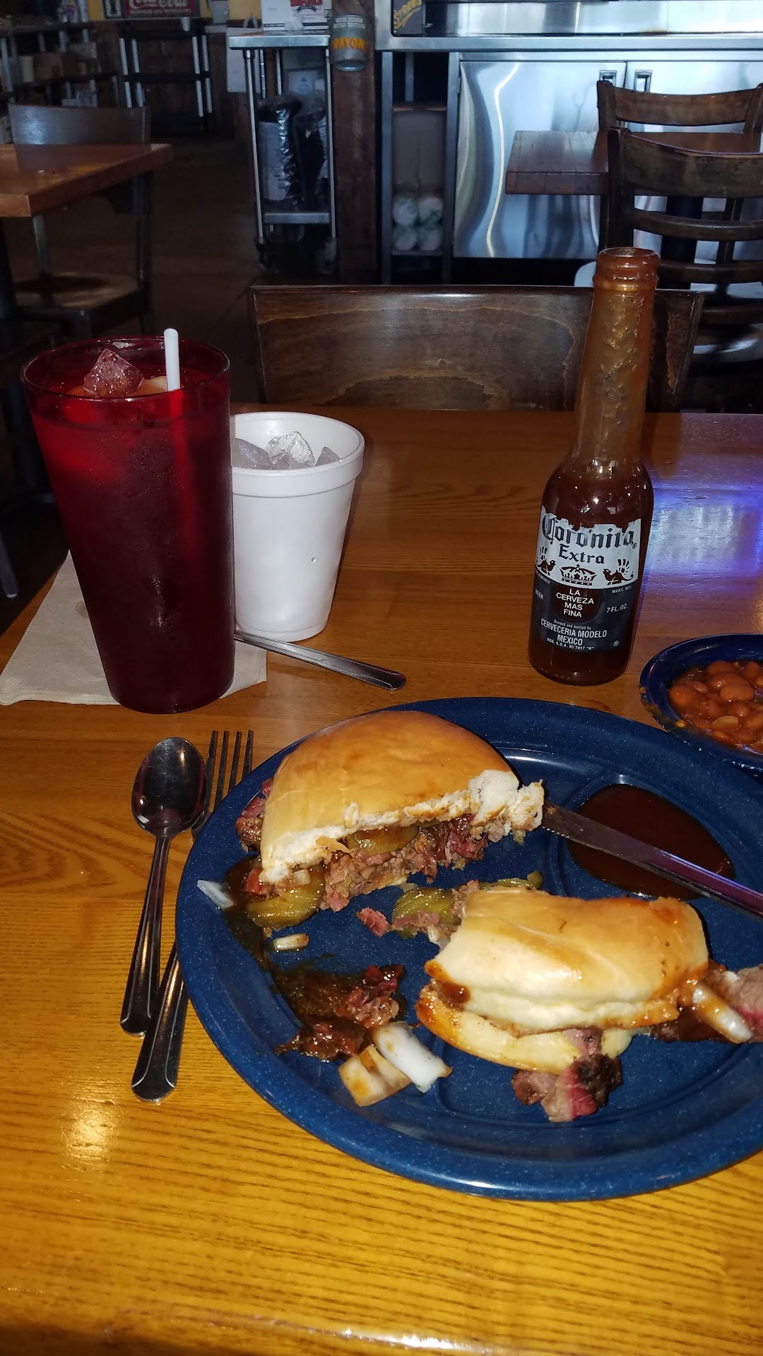 OMG so get ready for this review! A one-star was rated and I hadn't even touched my food yet because it was thrown away by Carl - who is a man who's worked there for over 20 years and thought that I was done with my plate when I had just excuse myself to the restroom and had been sitting for only 5 minutes! Really Carl?! The thing is, as soon as I walked in, I let him know that I was using my birthday email coupon that stated I get a free sandwich of my choice on my birthday. I explained to Carl when I walked in that it was my first time of coming and I ordered a side of beans and a iced tea to go with my meal. After I arranged everything and got my sandwich already to go with a barbecue sauce that they offer, I realized I had not washed my hands so I went to the restroom for not even 5 minutes to wash my hands and where I was sitting everything was organized where you could tell a person was just about to eat their meal. I can't believe this man picked up my meal and threw it away! When I walked out of the restroom everything was gone and it wasn't as if the dining room was full of people there were three guests in the dining room so there was no way he could tell me he thought I left. Then if that wasn't enough, a random customer that I assume goes in regularly said I did a very good job and called me a con artist not even knowing that Carl had thrown my sandwich away within 5 minutes so I can even give a proper rating to this restaurant I can only write it on the customer service I received and was only there for 5 minutes after I got my order. The manager apologized I ask for a refund which was just on my iced tea and the side of beans I ordered because I did not enjoy one moment that I was there! Everything went downhill after I returned to my table and my plate was gone and Carl laughed and said he thought I had left which was utterly ridiculous and he was lying. My suggestion - is you can't beat the original Sonny Bryan's it's worth the drive! I posted a pic of my meal that I would have eaten had Carl not thrown my plate away 5 minutes later when I was in the restroom. This is how my spot looked when I got up to use the restroom so it is very obvious and Common Sense tells you the person is coming right back! Horrible customer...