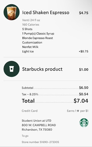 This Starbucks is a total scam. The manager lied to me and said light ice is not extra since they only put extra milk into the drink when clearly on the receipt it says an extra $0.75.