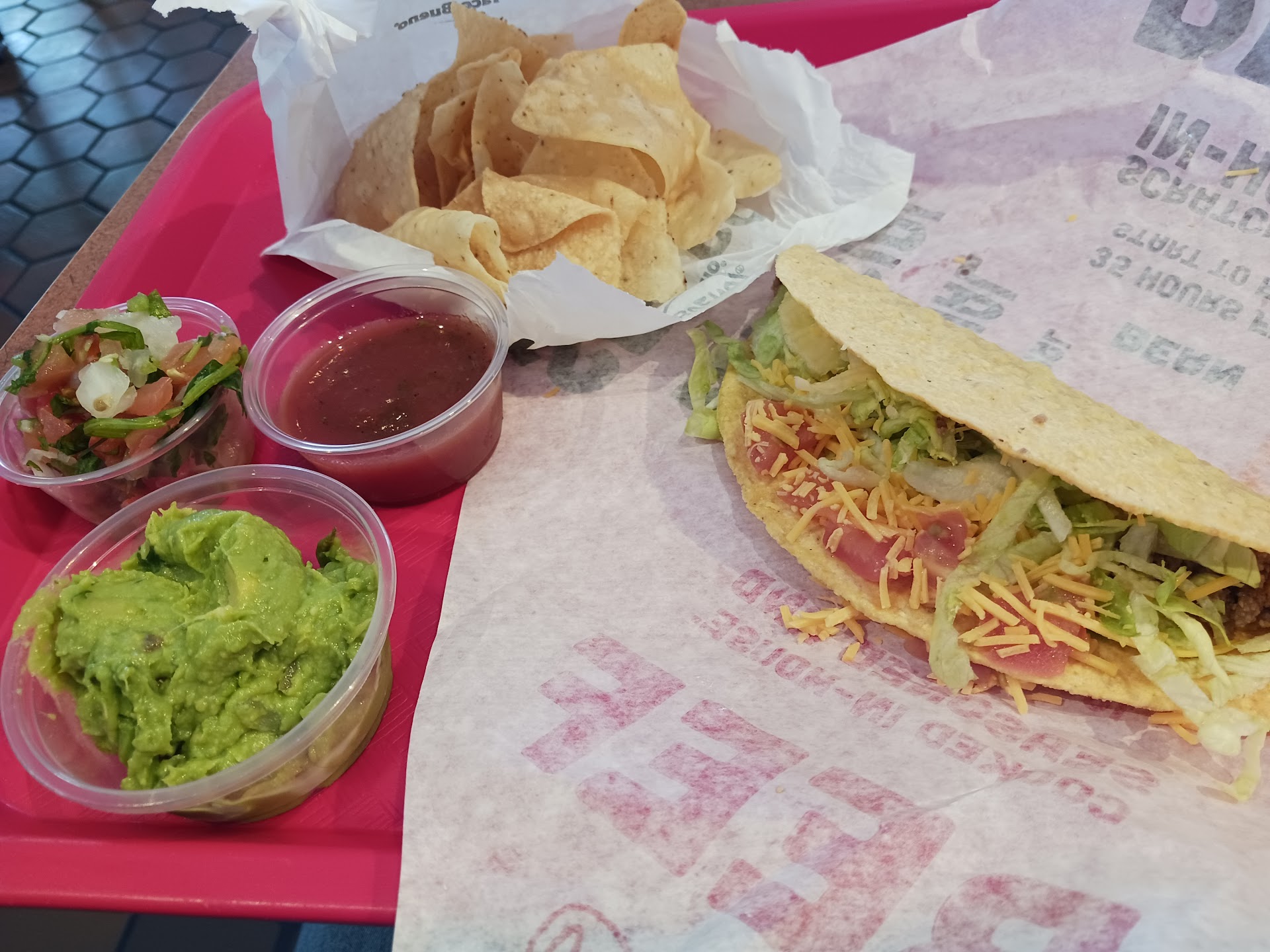 Read moreI really loved Taco Bueno 10 years ago. How disappointing! This place doesn't smell of cooking food or disinfectant. It's an odd smell. They should cook some hamburger and onions just so it smells like food. The chips and crispy taco shell had a slightly bitter flavor. The meat didn't look browned, but the flavor was ok. Good salsa bar I thought, but not once did anyone clean the drips and a spoon was misding for red salsa. My table had remnants from some other meal. The guac was odd in color...very dark green. Why? I did eat most of my beef taco, guac, and chips, however, but wasnt much to it. Yep, hungry. I hope I dont get sick. Makes me sick to think of it now. One small taco and 2 tablespoons of guac cost $6. I stopped in the restroom, and the odor of urine was appalling! I thought I was in the men's, but no. Looks cleaned, but HORRIBLE SMELL!!! I think this place might get closed down. We'll, I won't be back to ANY Taco Bueno again. I knew I was crazy, but I had fond...